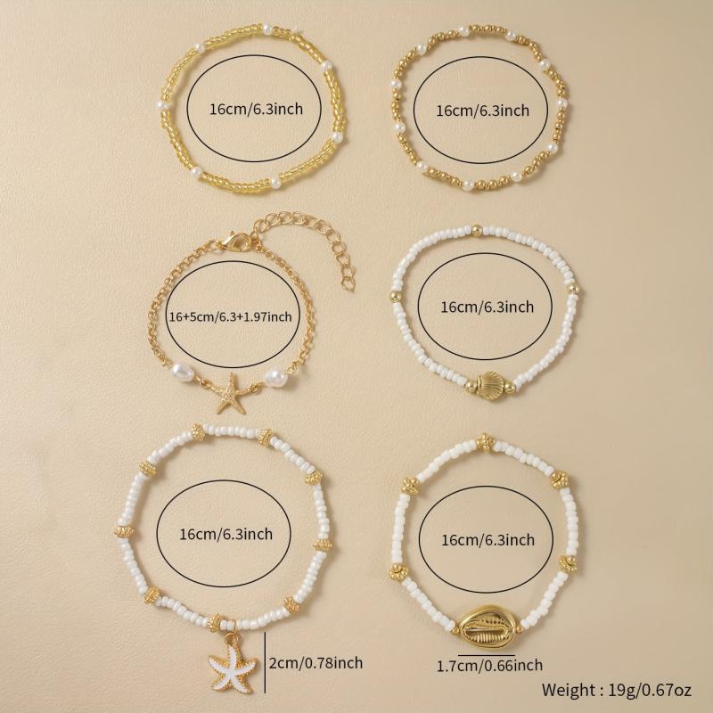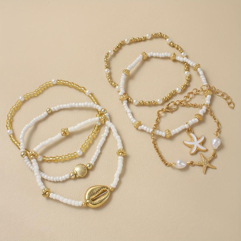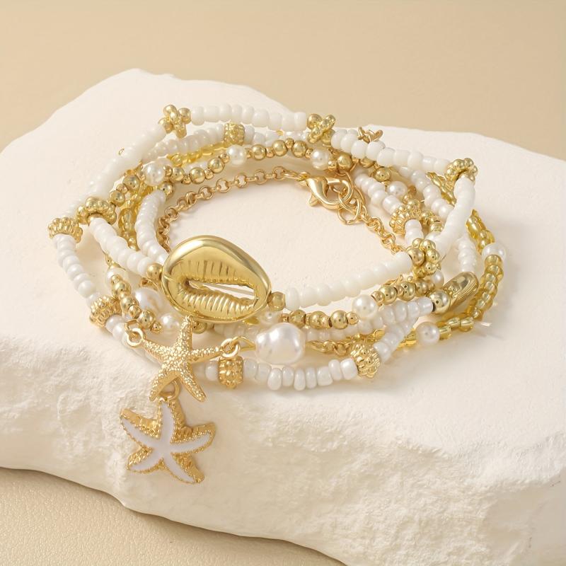 Elevate your summer beach and daily date look with this fashionable bracelet set. Adorned with starfish and shell pendants, it adds a touch of sexy charm. Makes for a great gift for women.