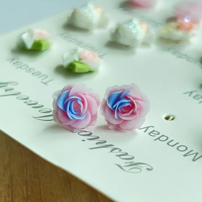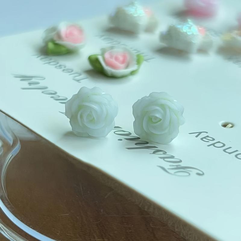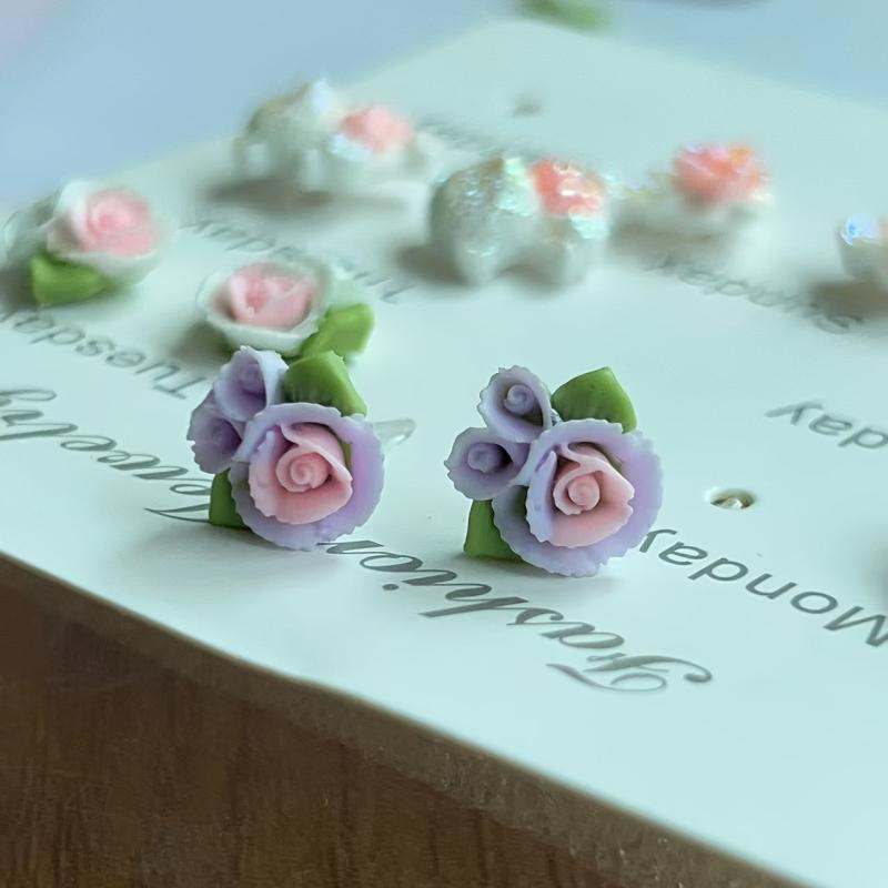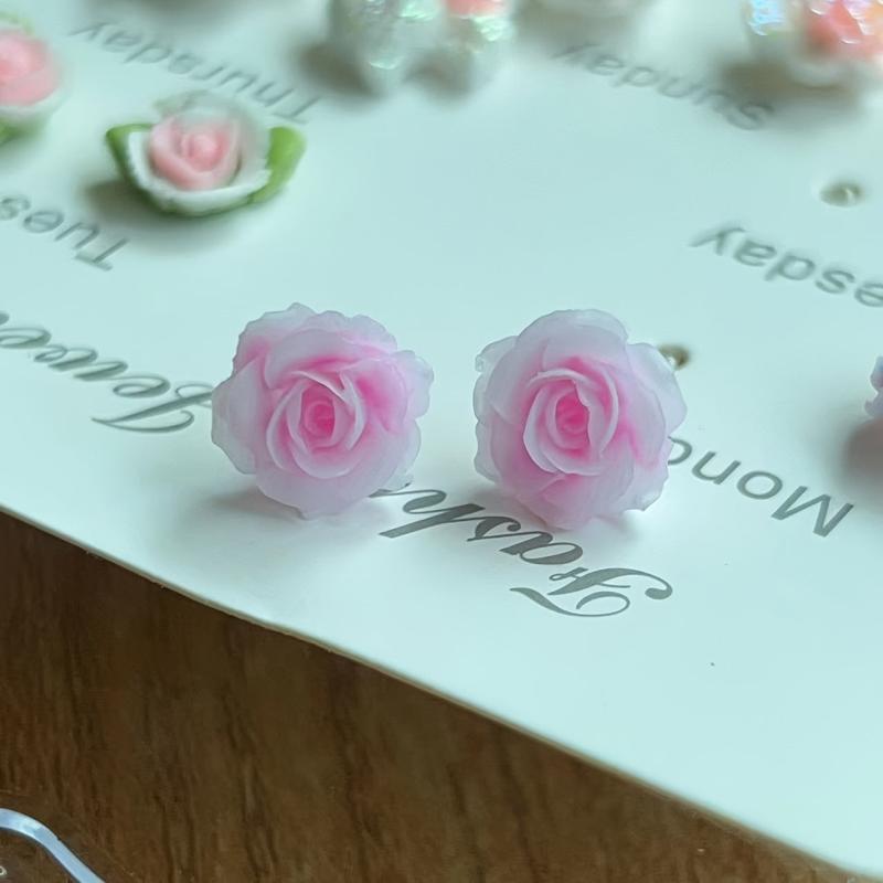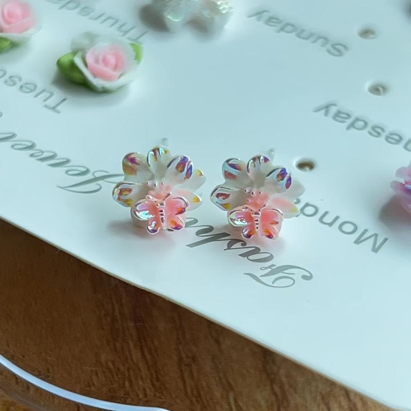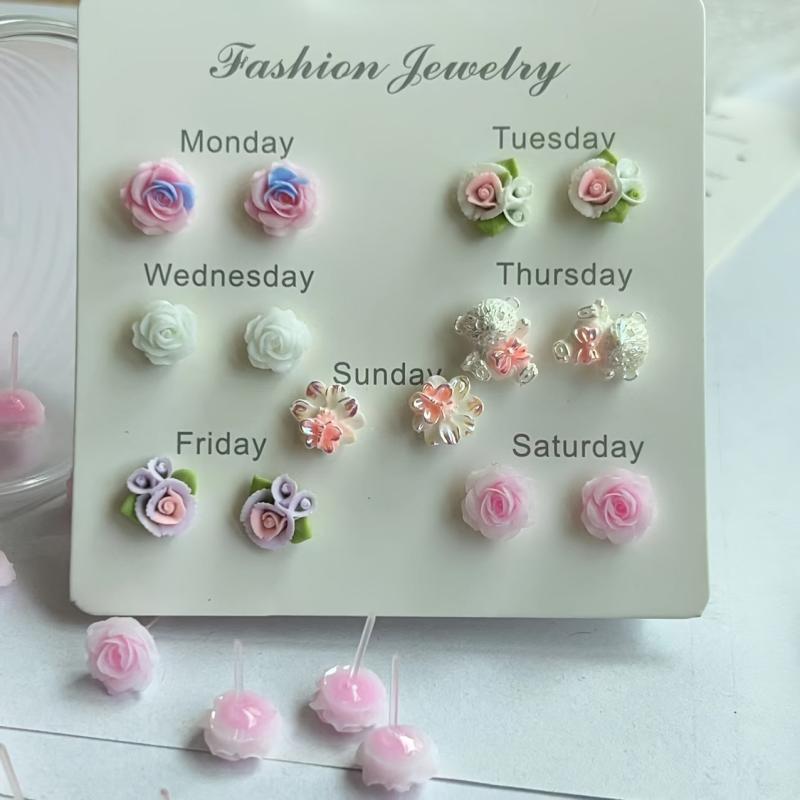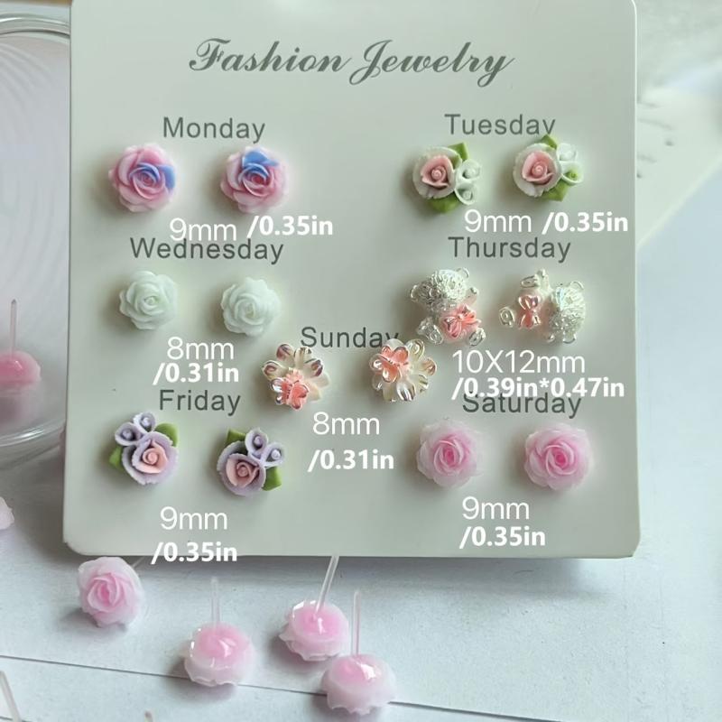 This unique set includes 7 pairs of floral resin earrings featuring plastic bear and flower designs. Perfect as a gift or to add a quirky touch to your jewelry collection.
