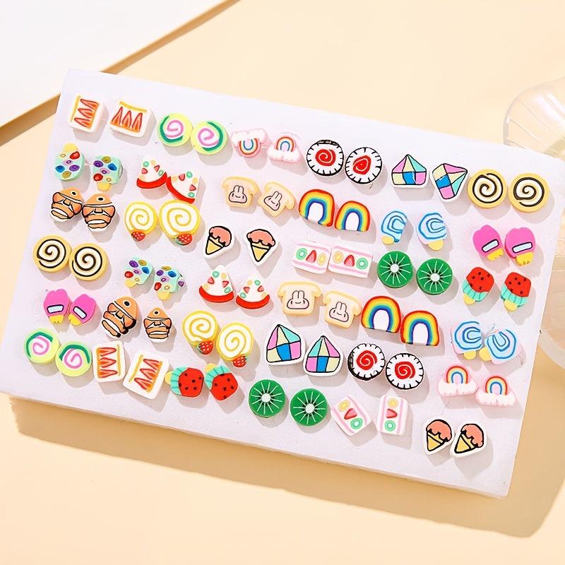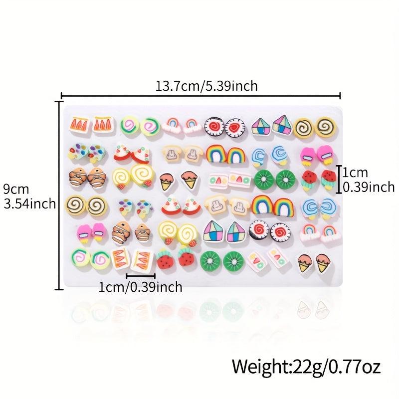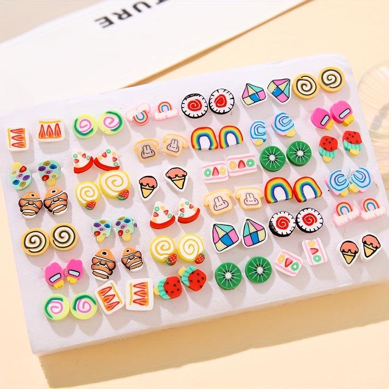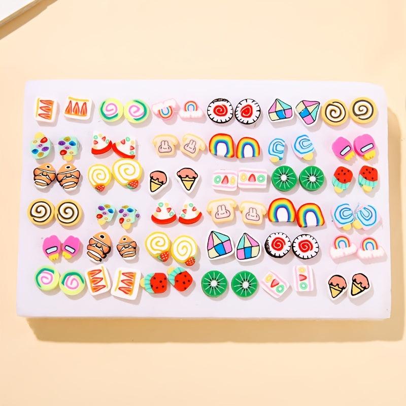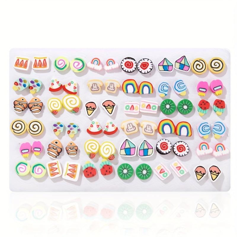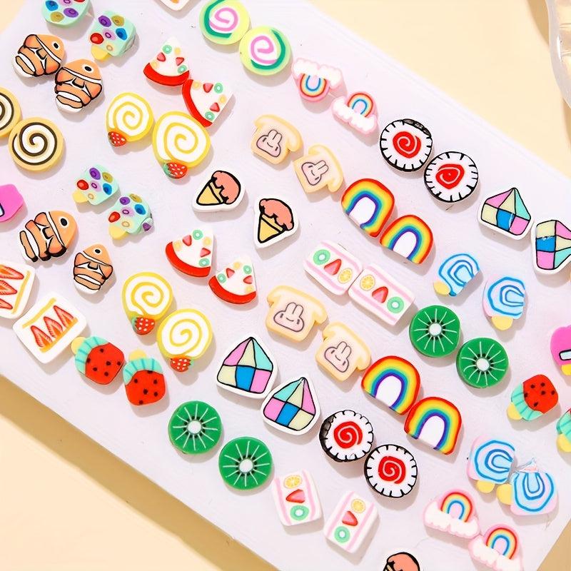 This set includes 72 sweet fruit pastry pattern clay earrings, perfect for daily wear or gifting to someone special.