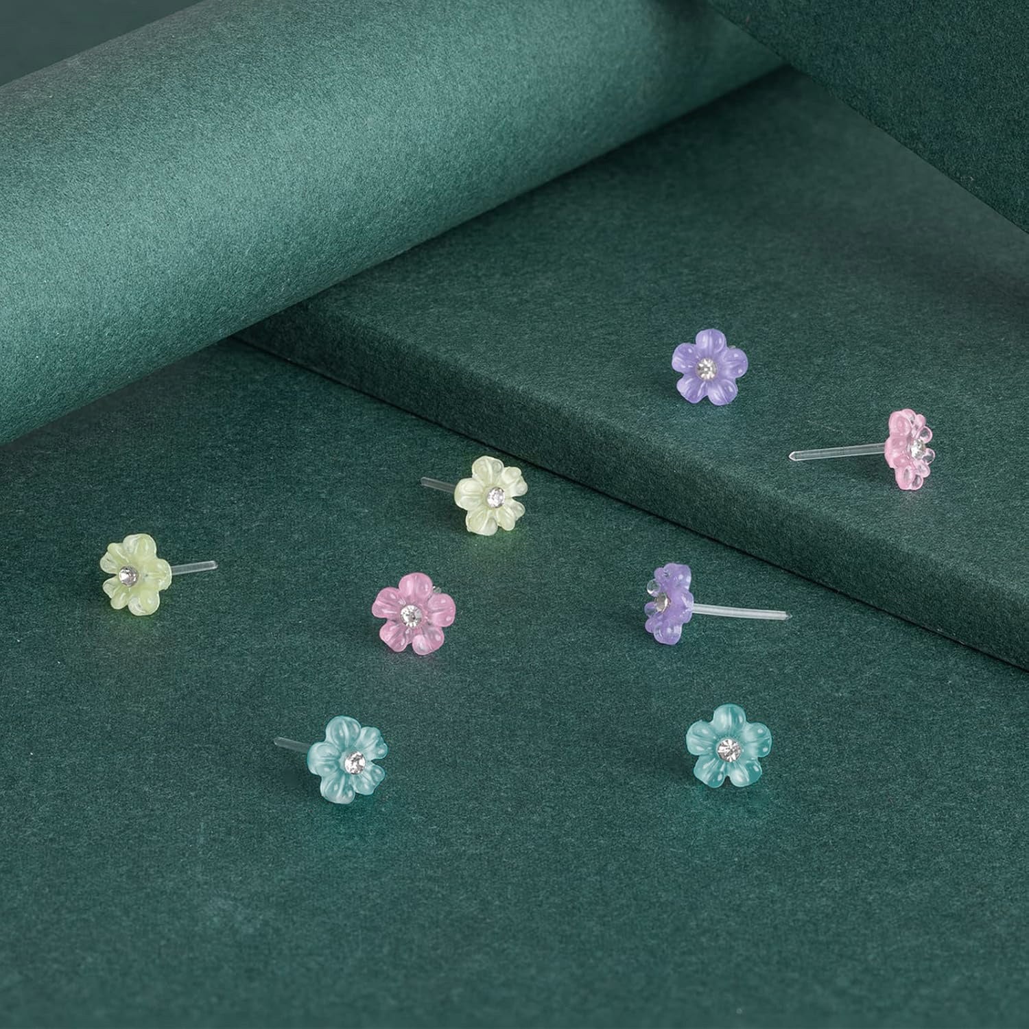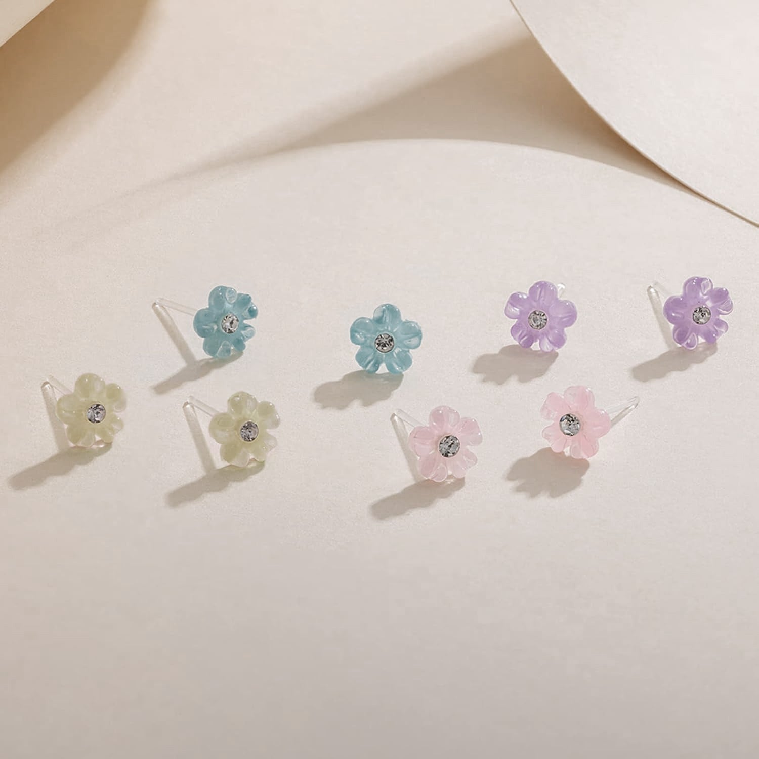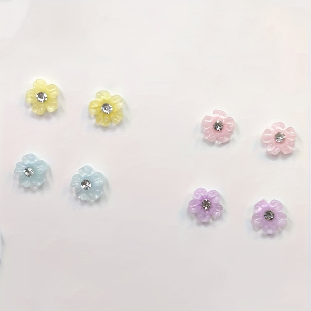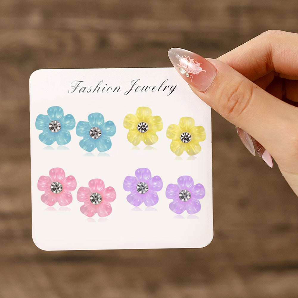 8pcs Floral Resin Earrings Set Hypoallergenic Plastic Posts for Sensitive Ears