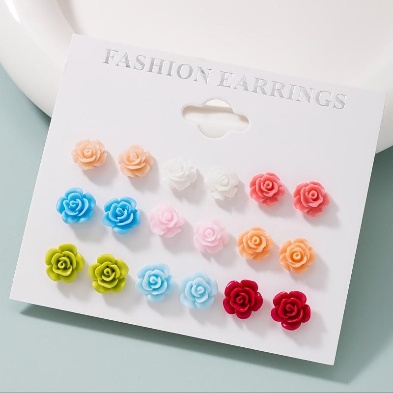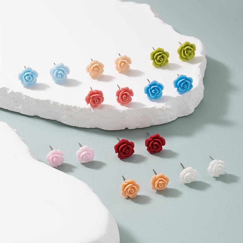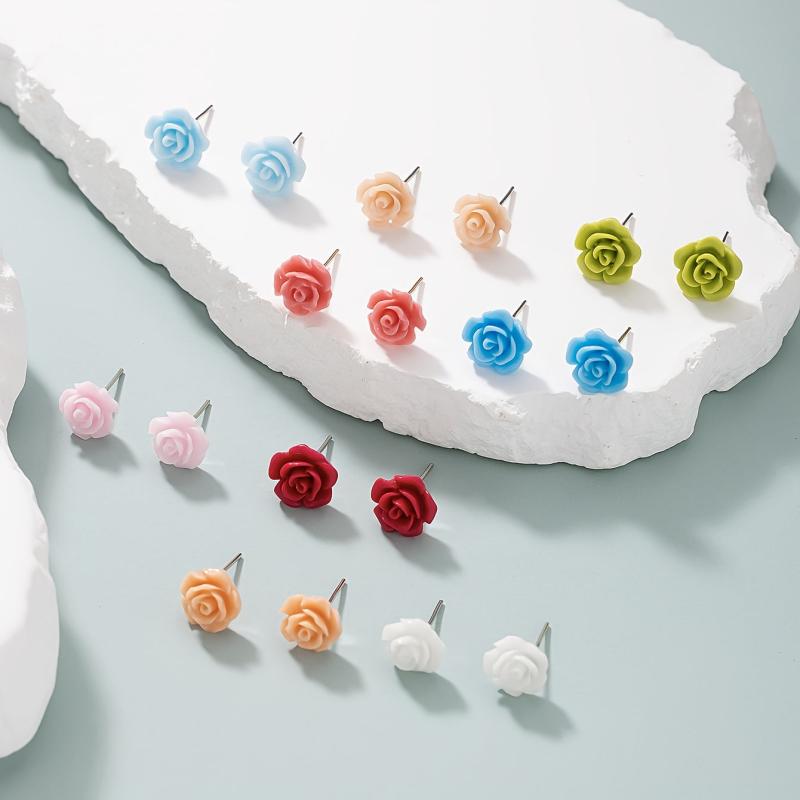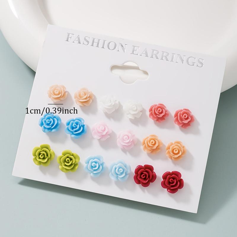 Elevate your style with this set of 9 pairs of fashionable resin small flower earrings designed for daily wear and holidays.