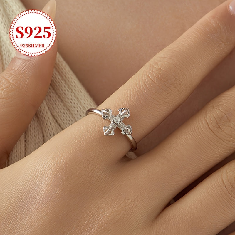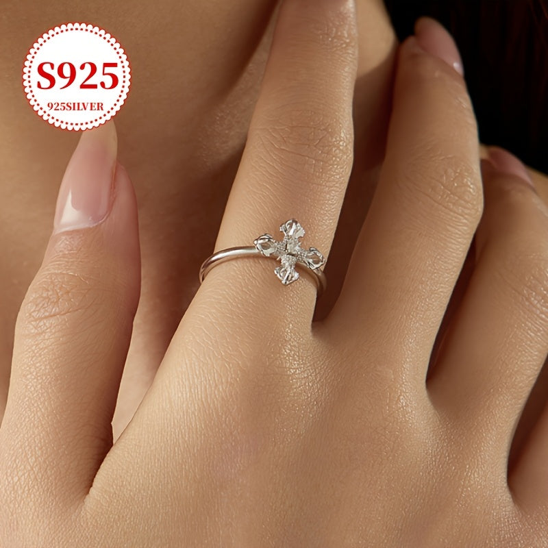 Add a touch of punk-inspired style to your look with this 925 silver cross ring featuring a sleek open band design and sparkling cubic zirconia accent. Perfect for adding an edgy flair to any outfit.