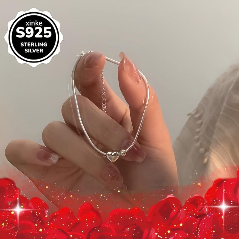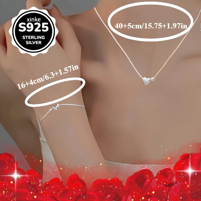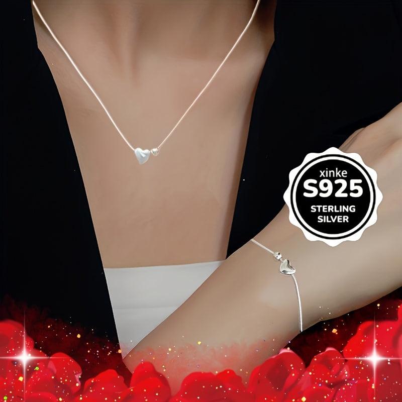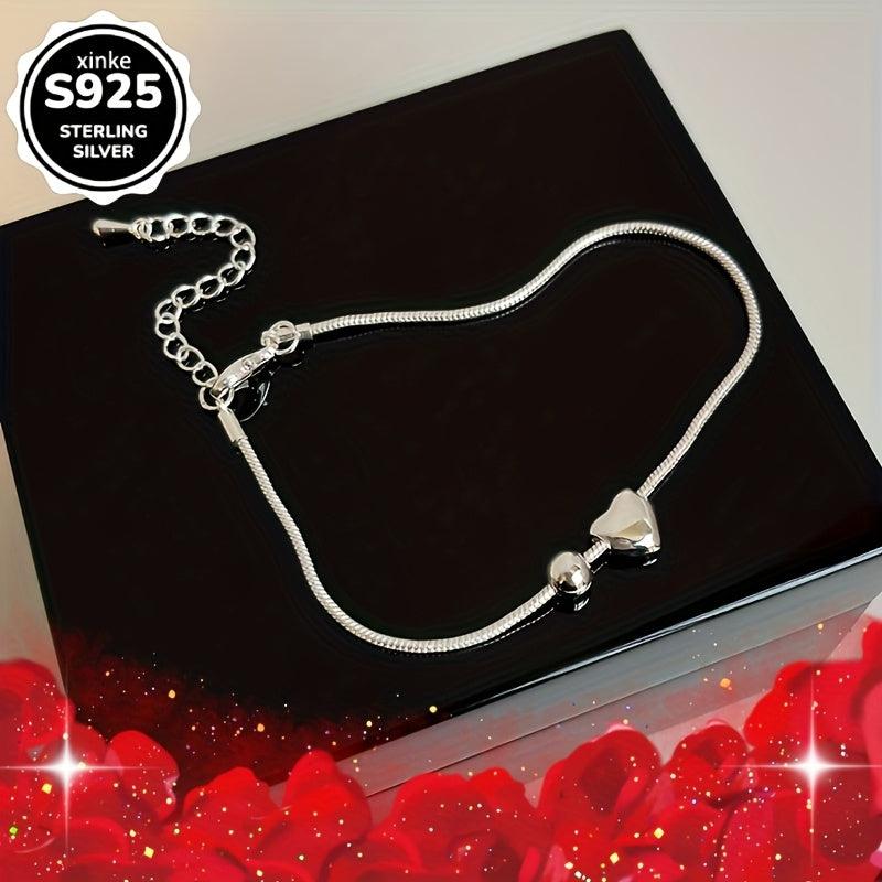 This set of 925 silver heart pendant bracelets is perfect for daily wear, parties, and beach outings. Great gift for mothers.
