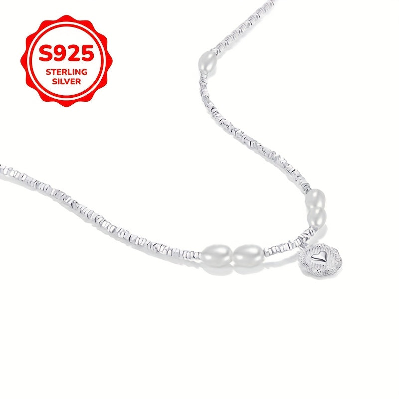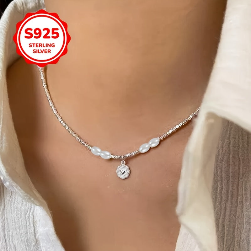 925 Silver Heart Polygon Pendant Necklace with Collarbone Chain
