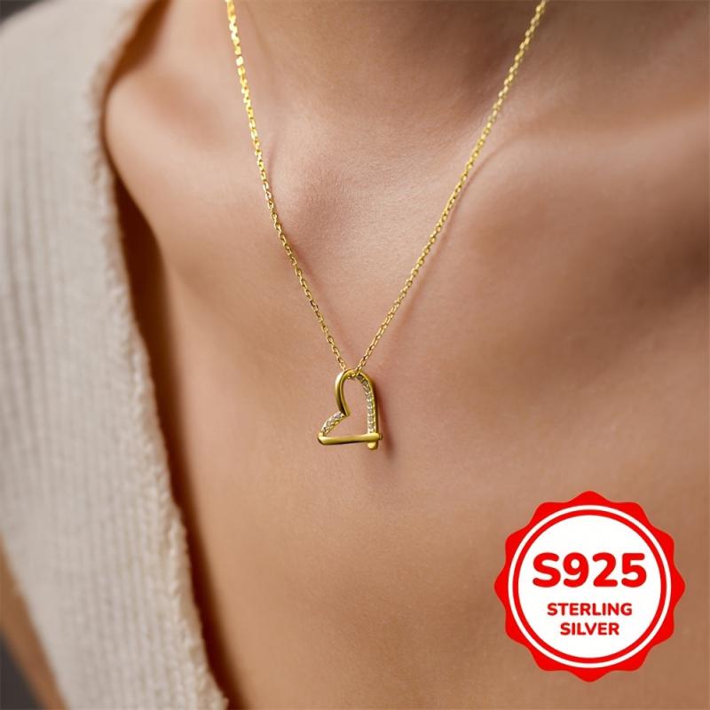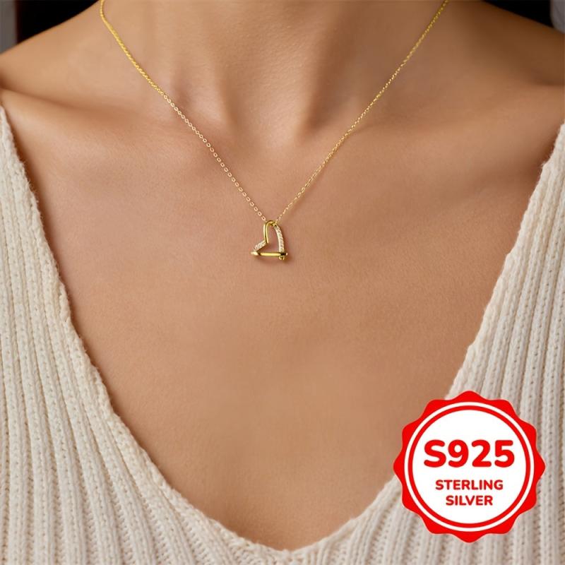 This stunning necklace features a fashionable, hollow heart pendant adorned with synthetic Zirconia. Perfect for women, friends, or mothers.