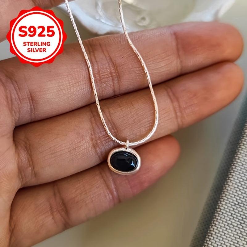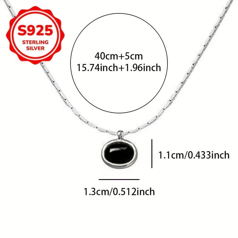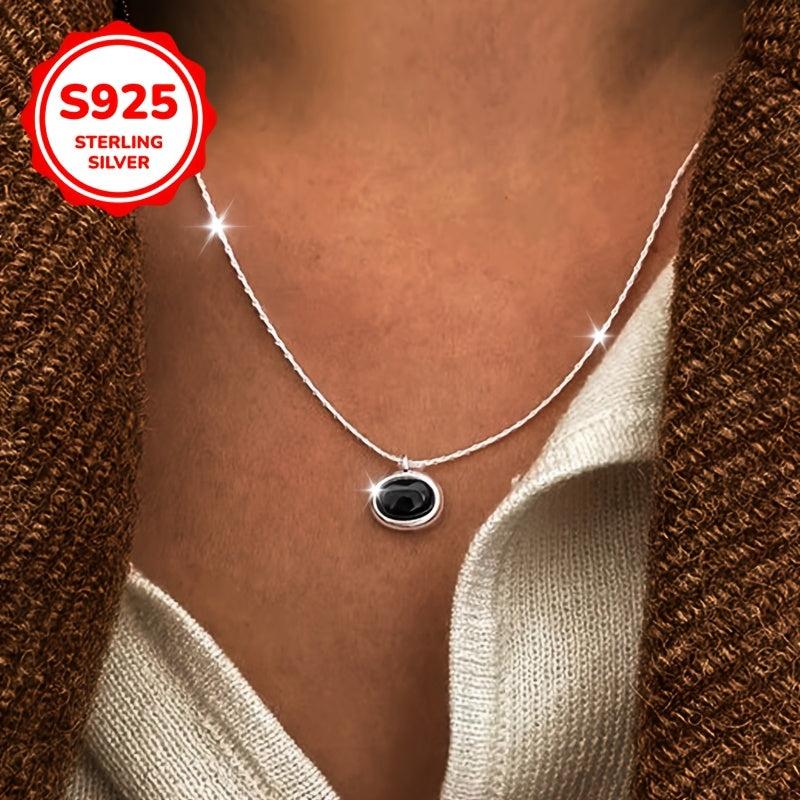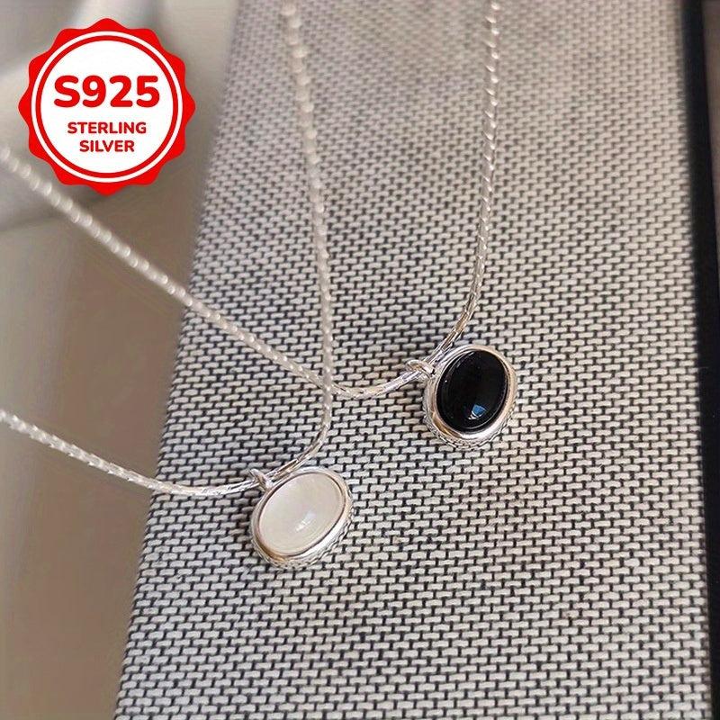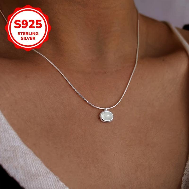 925 Silver Oval Pendant Necklace French Style Lightweight Clavicle Chain