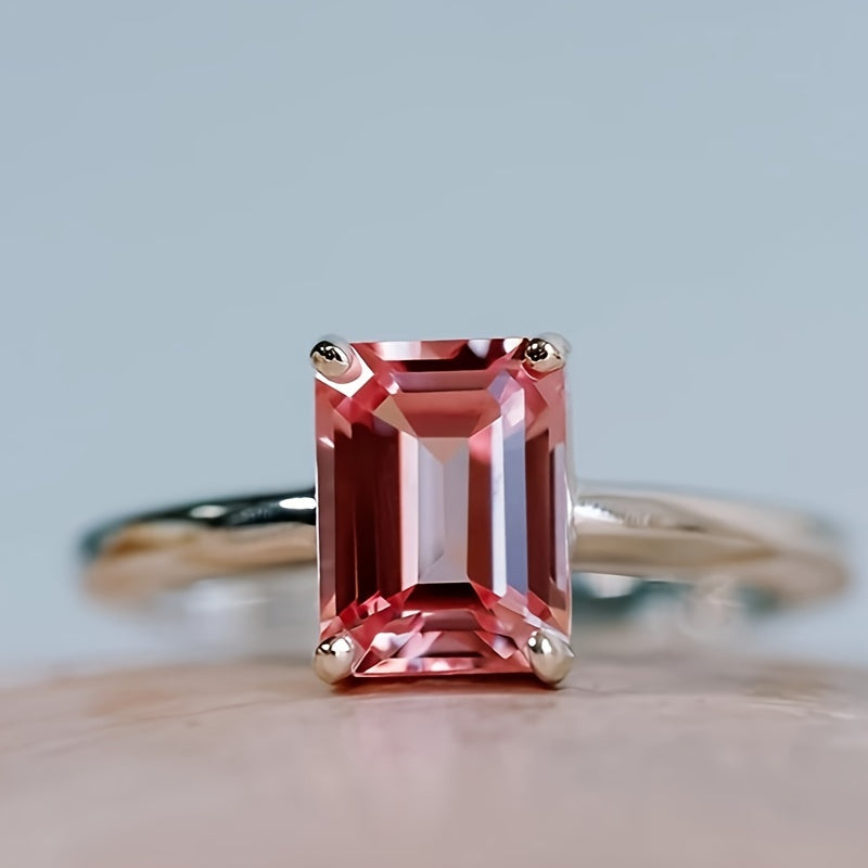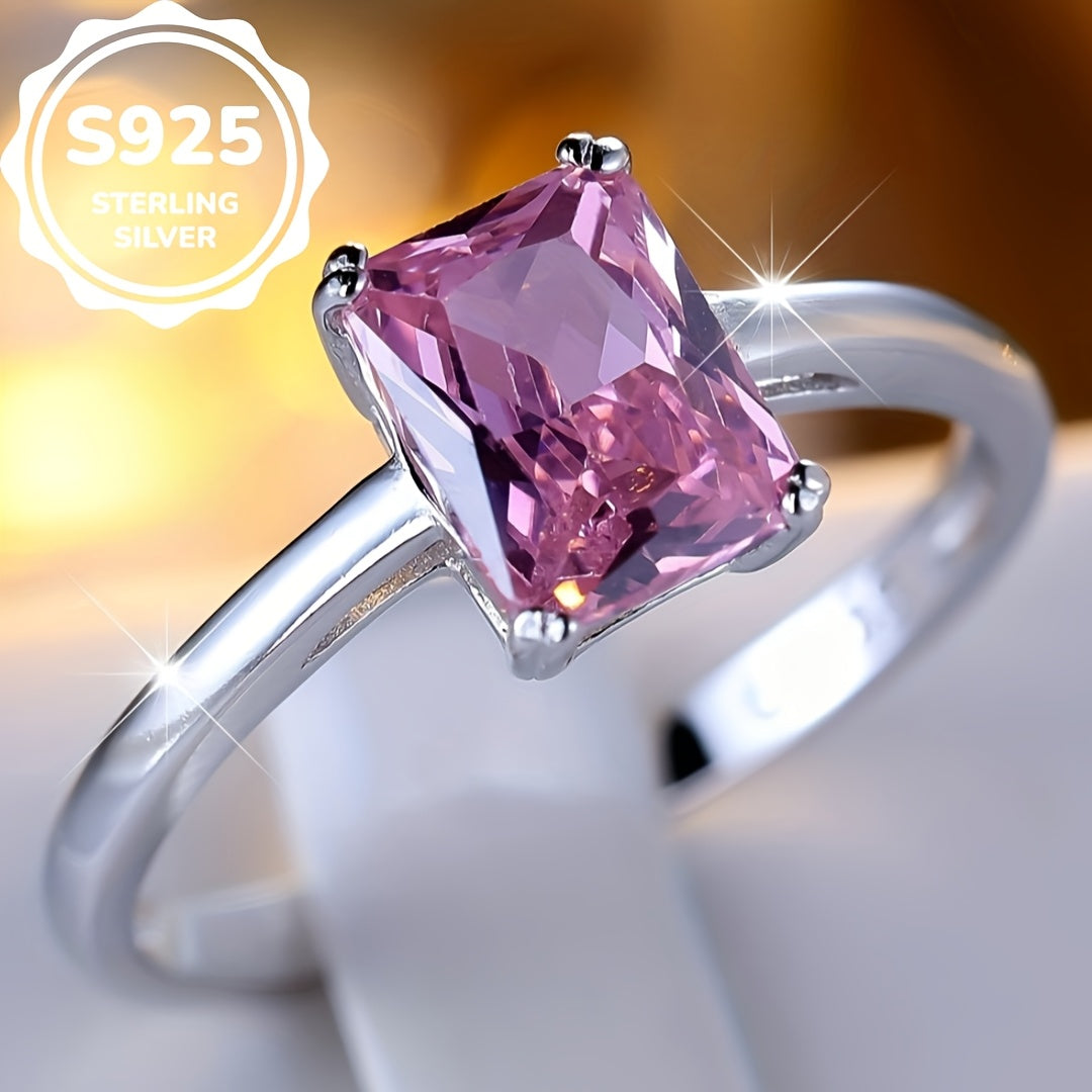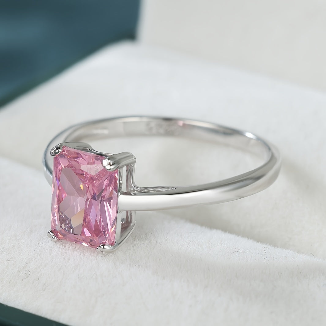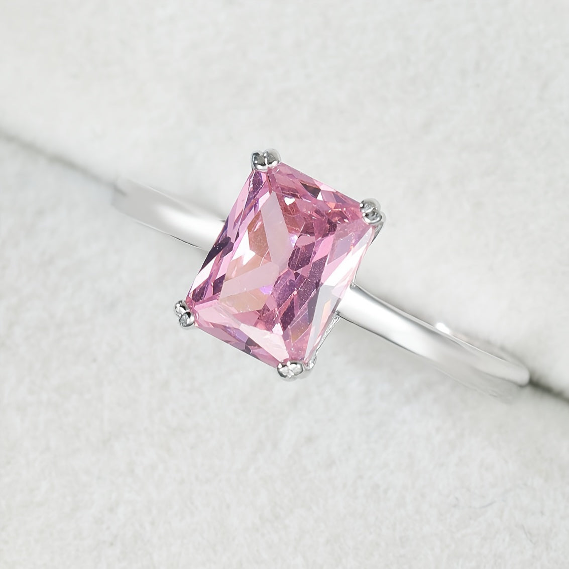 Elegant and versatile, this 925 sterling silver ring features a square cut pink zirconia stone that adds a touch of glamour to any outfit. Perfect for daily wear or as a thoughtful gift for a loved one.