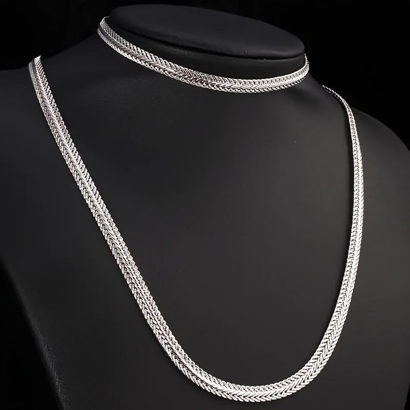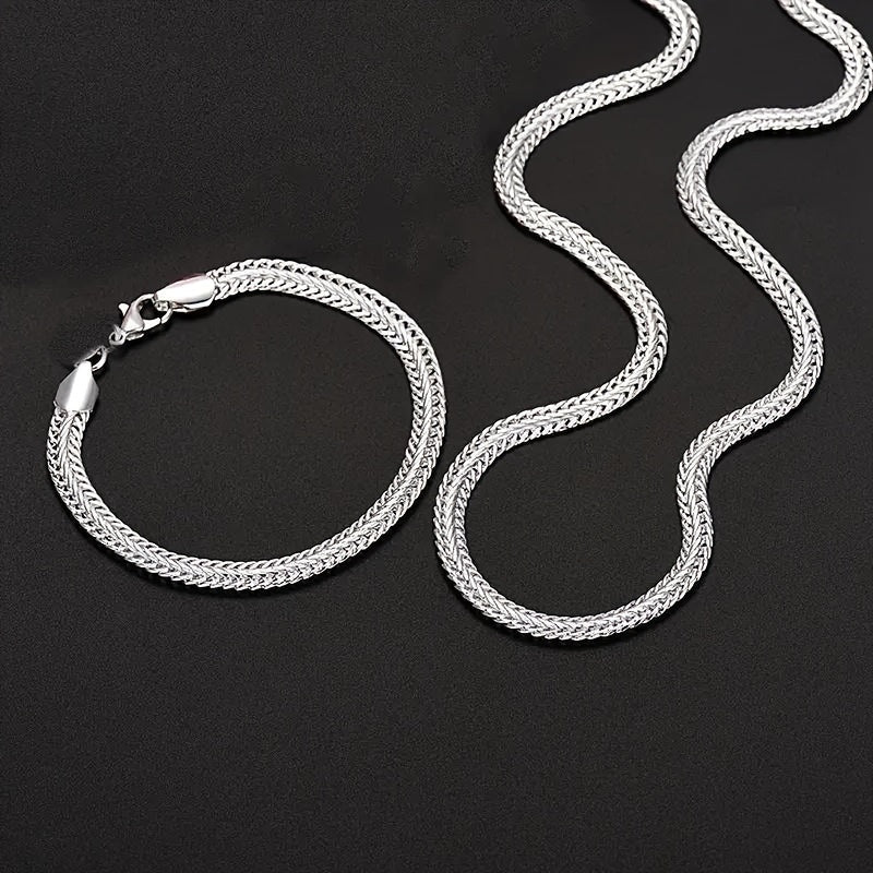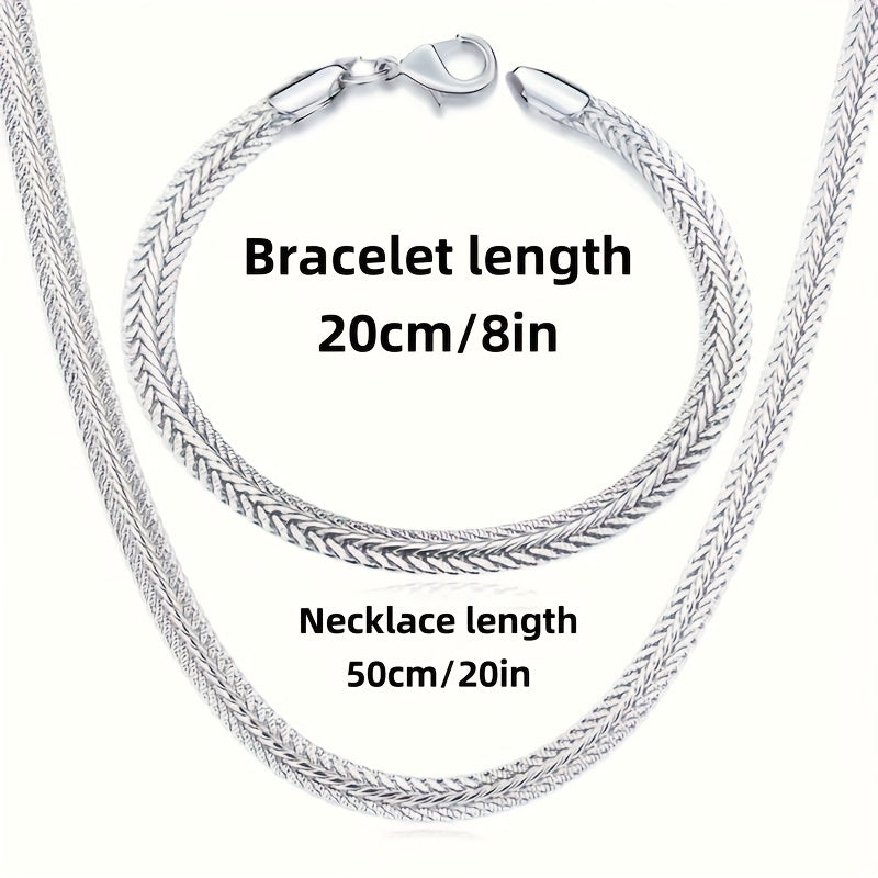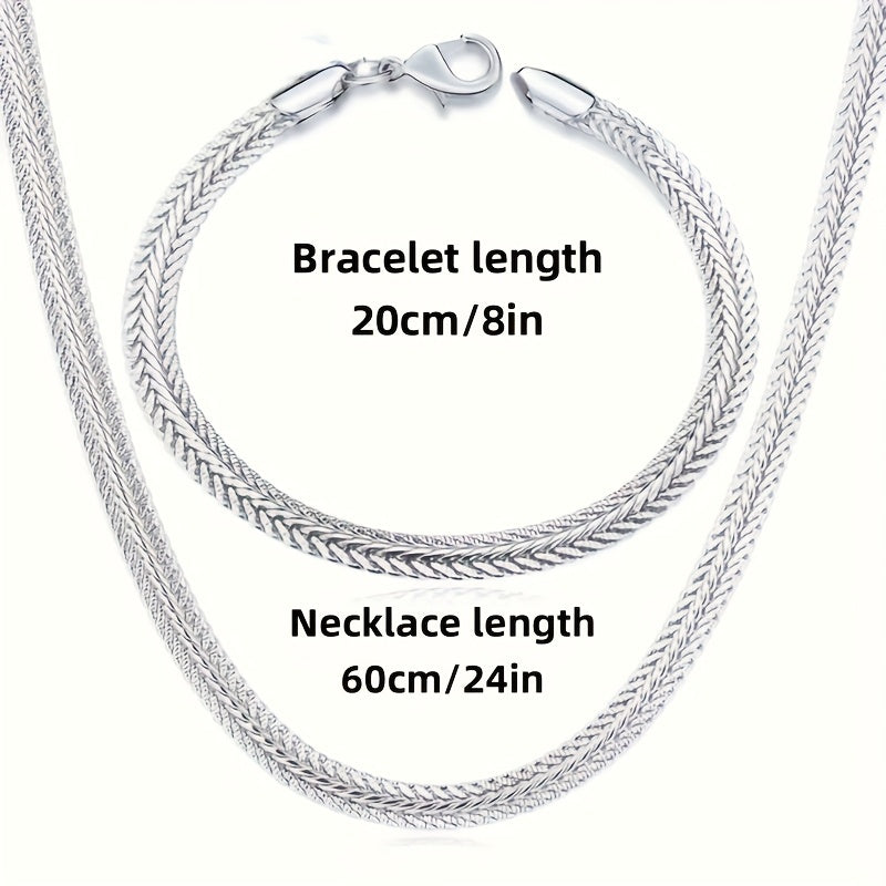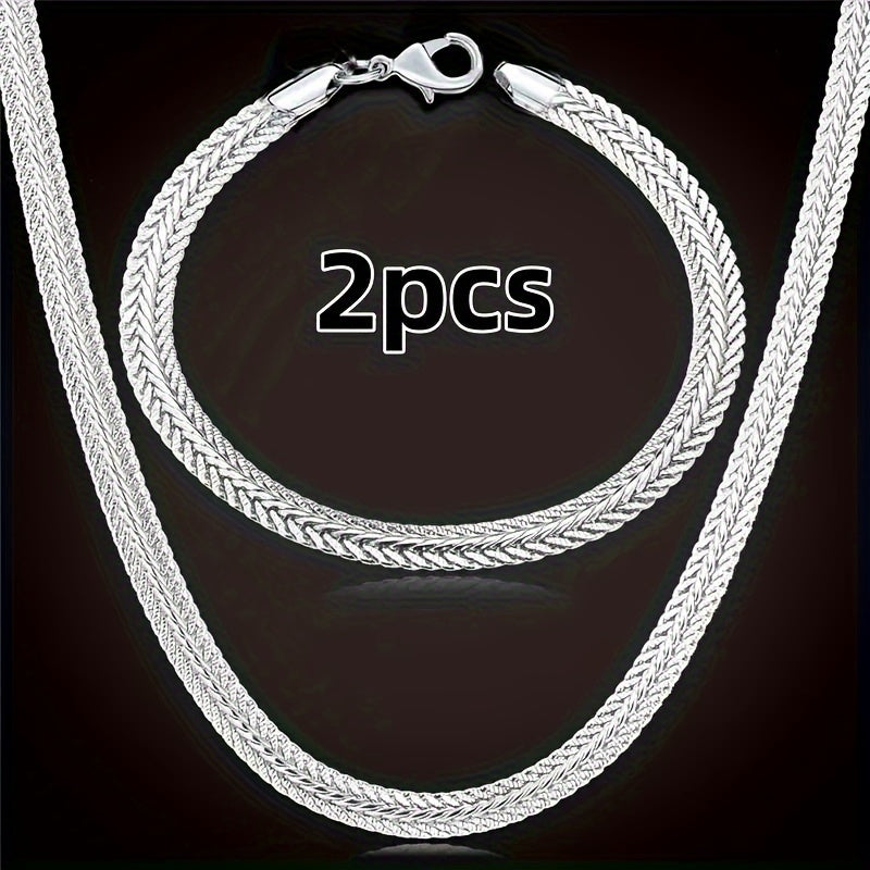 Elevate your style with this 2-piece jewelry set, featuring a flat snake bone design. Crafted in 925 silver plating, this set is a perfect addition to any outfit.