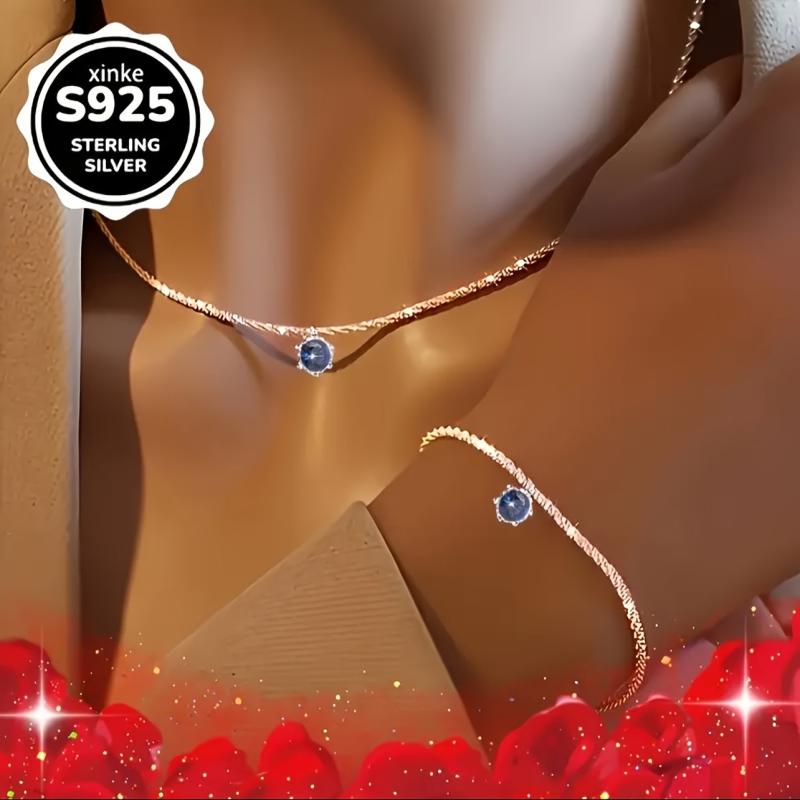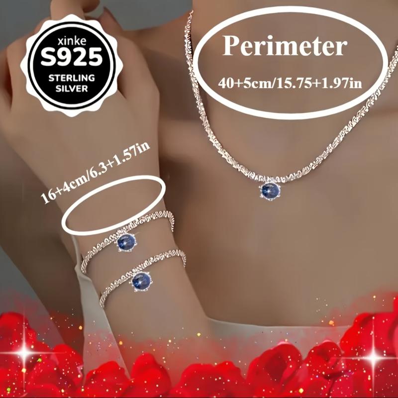 Elegant set crafted from 925 sterling silver with zirconia stones, perfect for parties or beach outings.