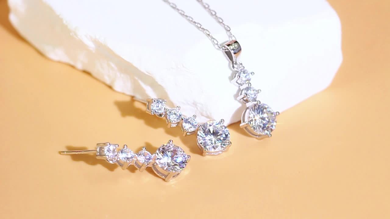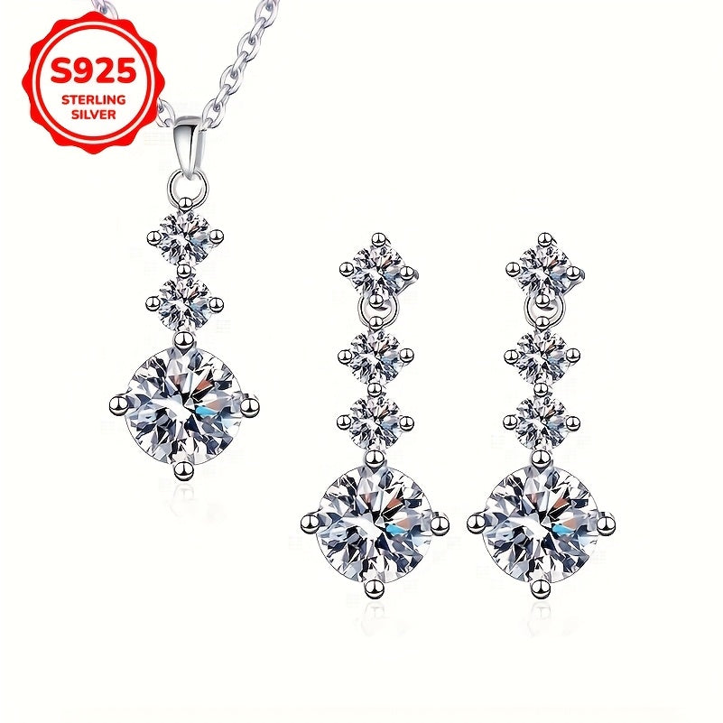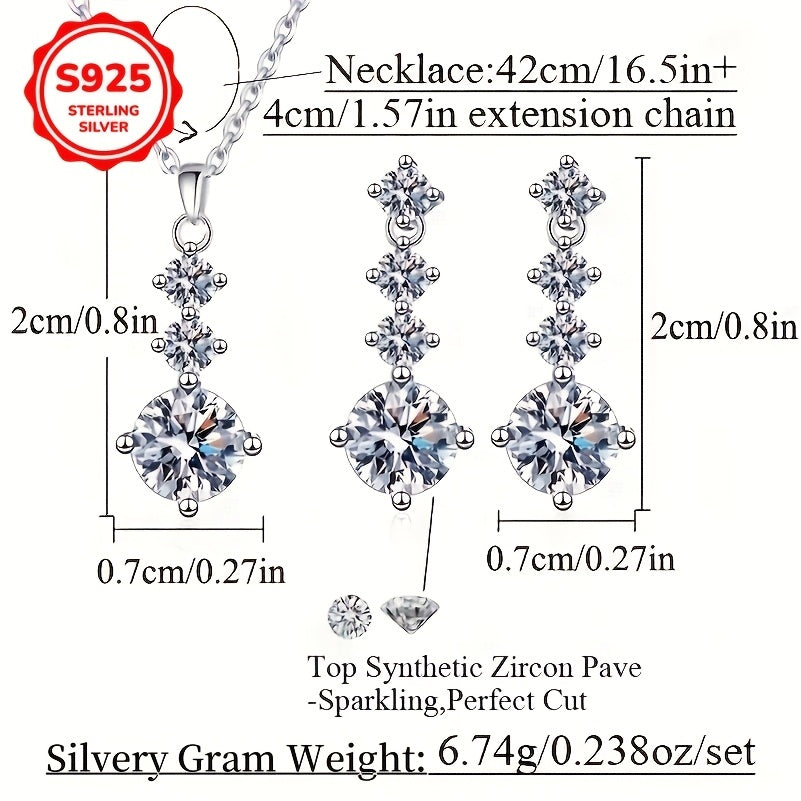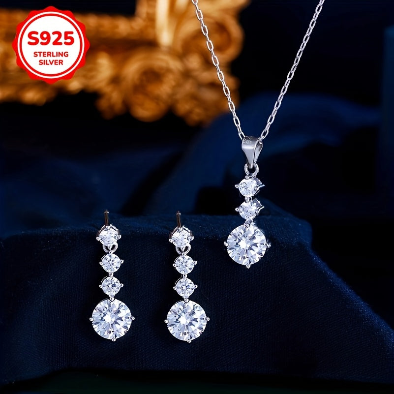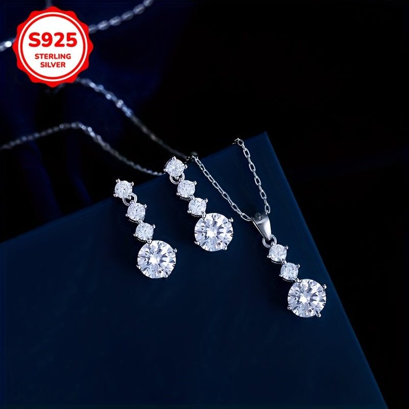 This classic style jewelry set includes a pair of drop earrings and a pendant necklace. Crafted from 925 sterling silver, this set features dazzling zirconia inlays for added elegance.
