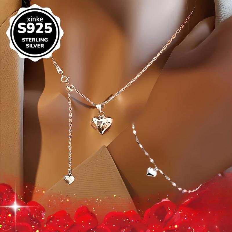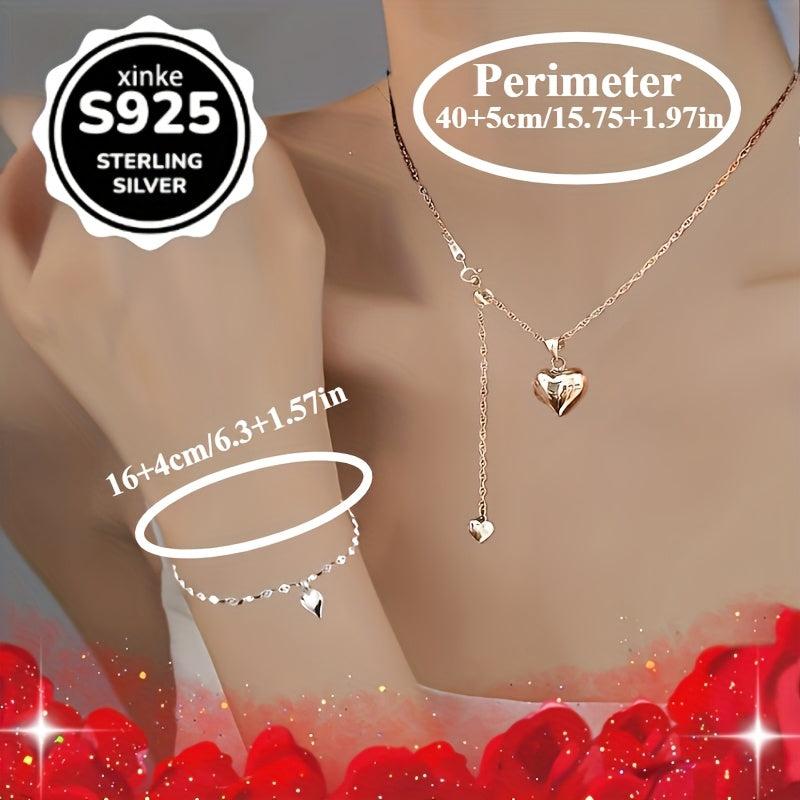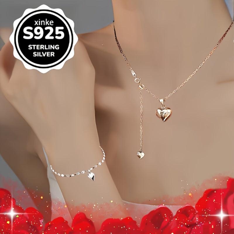 925 Sterling Silver Lip & Heart Pendant Necklace & Bracelet Set