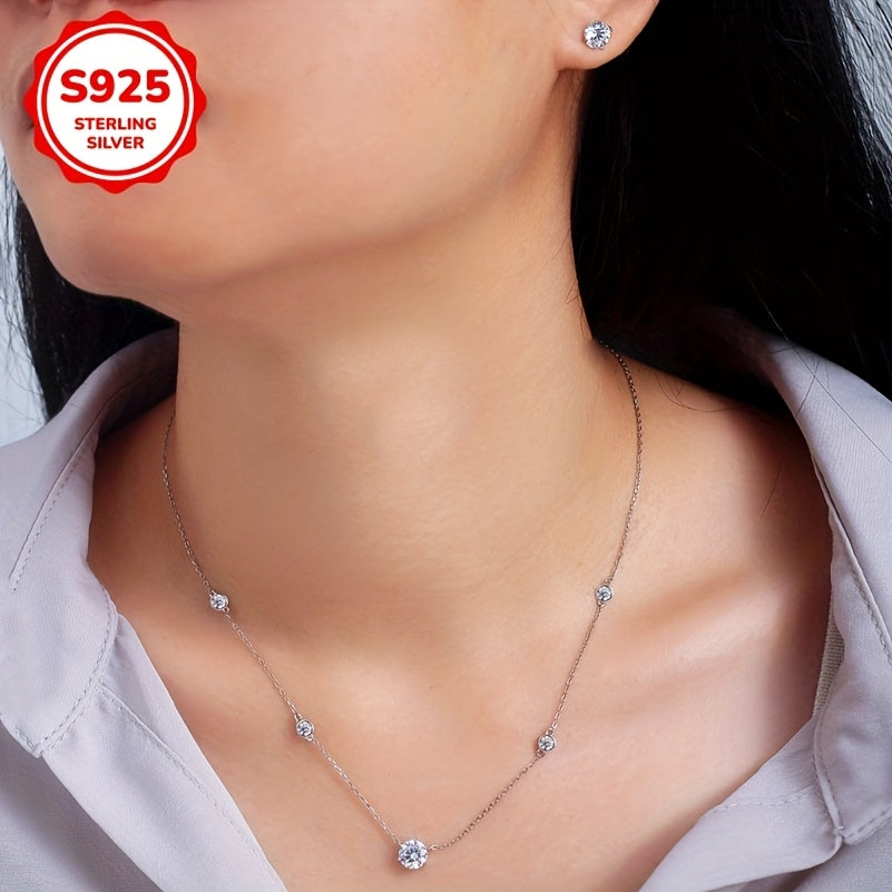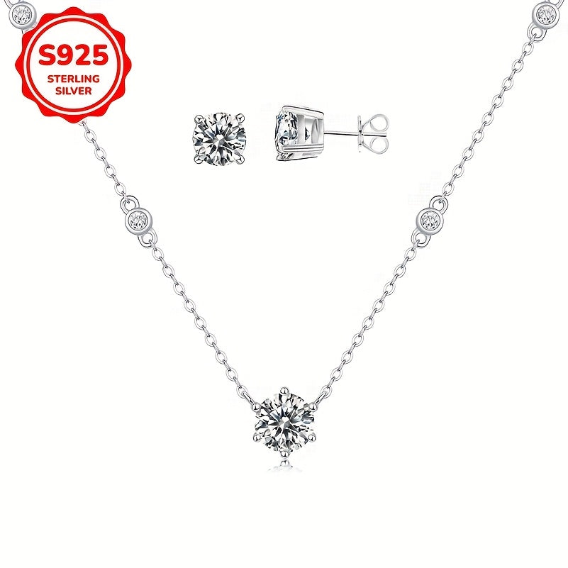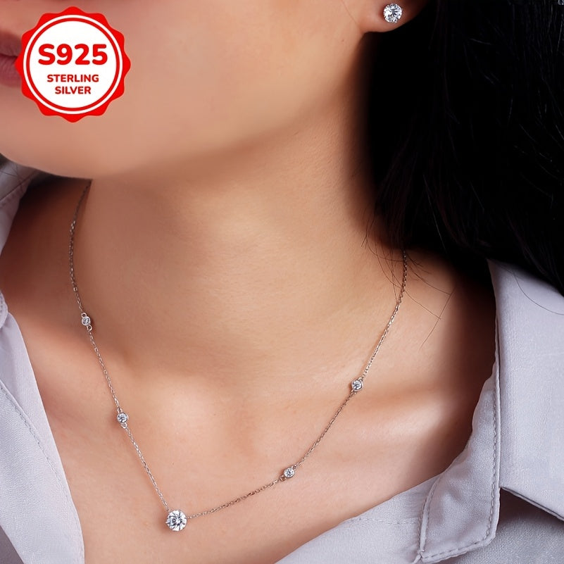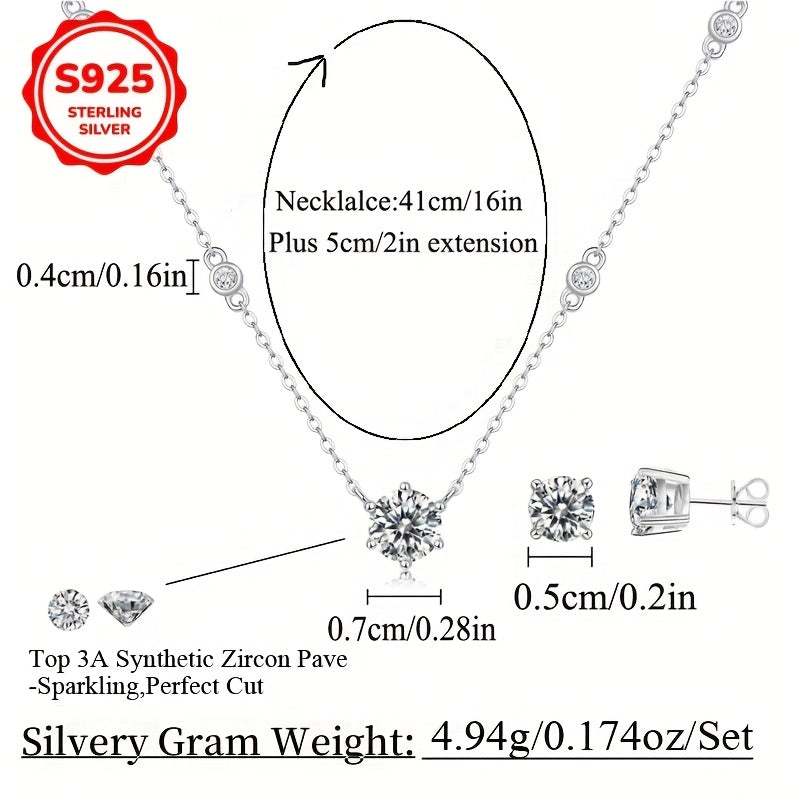 This elegant set of jewelry for women includes a pair of round stud earrings and a chain necklace made of high-quality 925 sterling silver. The total weight of the set is 4.94 grams (0.174 ounces), offering a classic and timeless look.