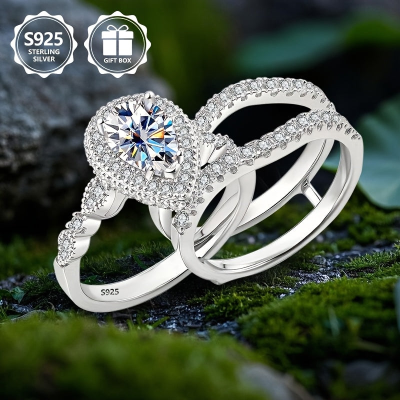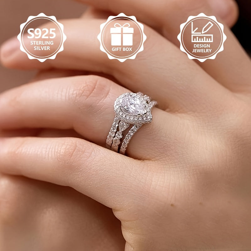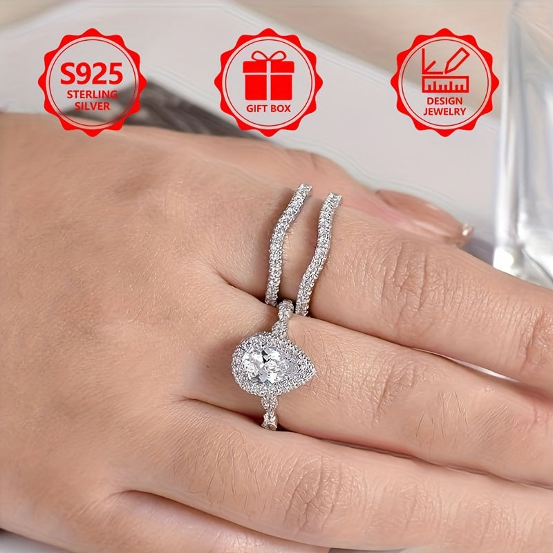 This elegant 925 sterling silver ring features a unique design with cubic zirconia accents, making it perfect for engagements or weddings with friends or yourself.