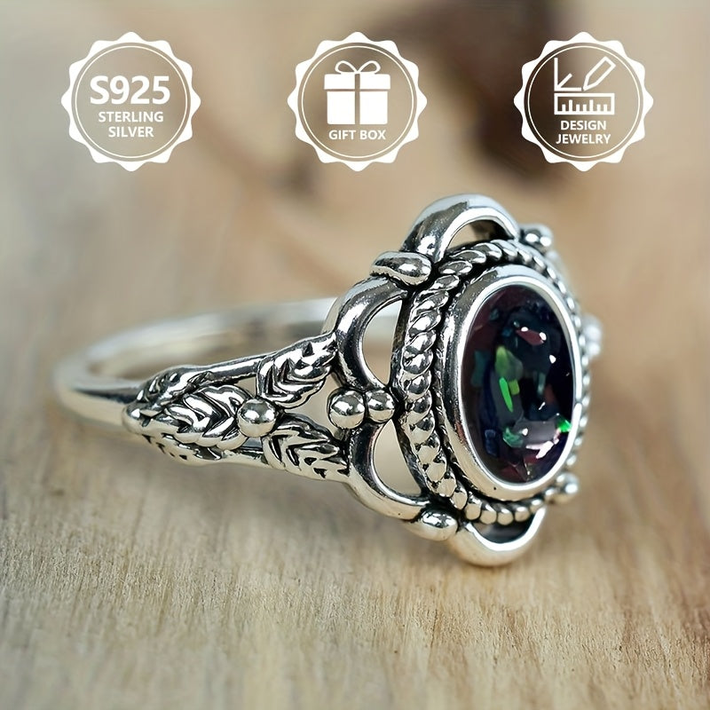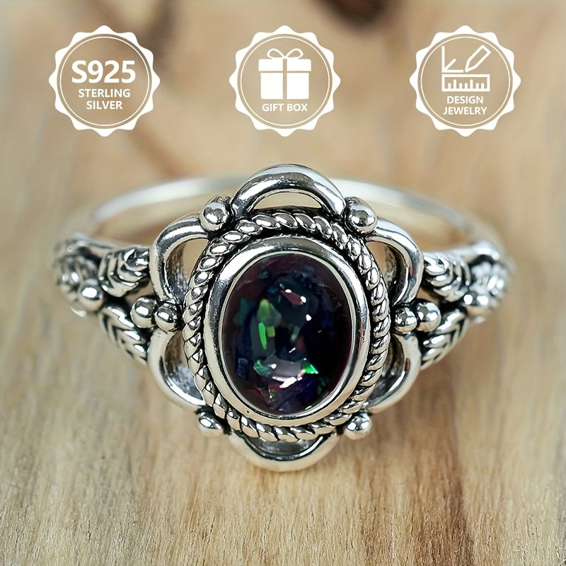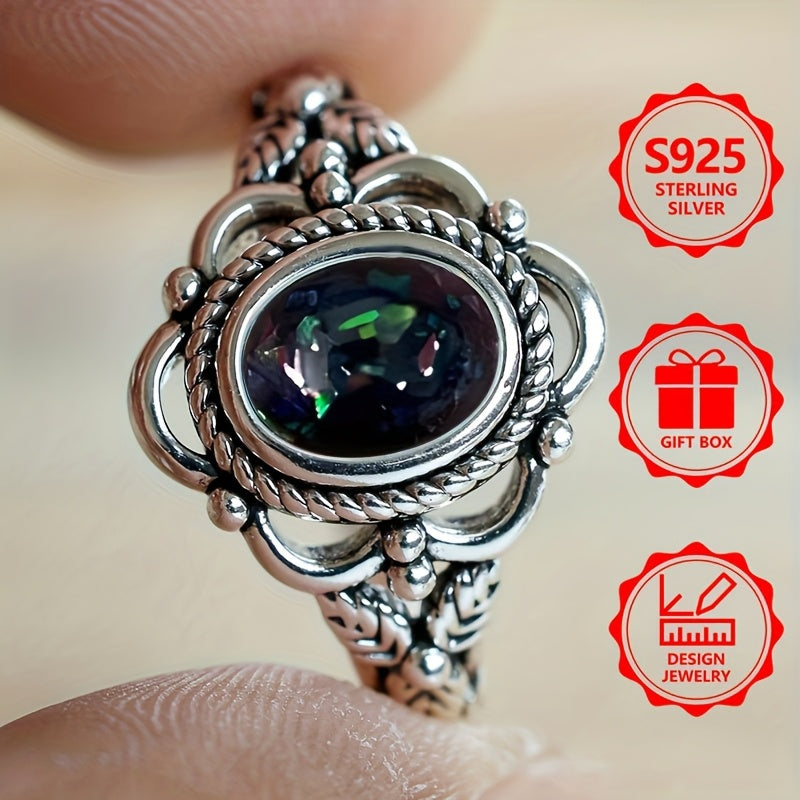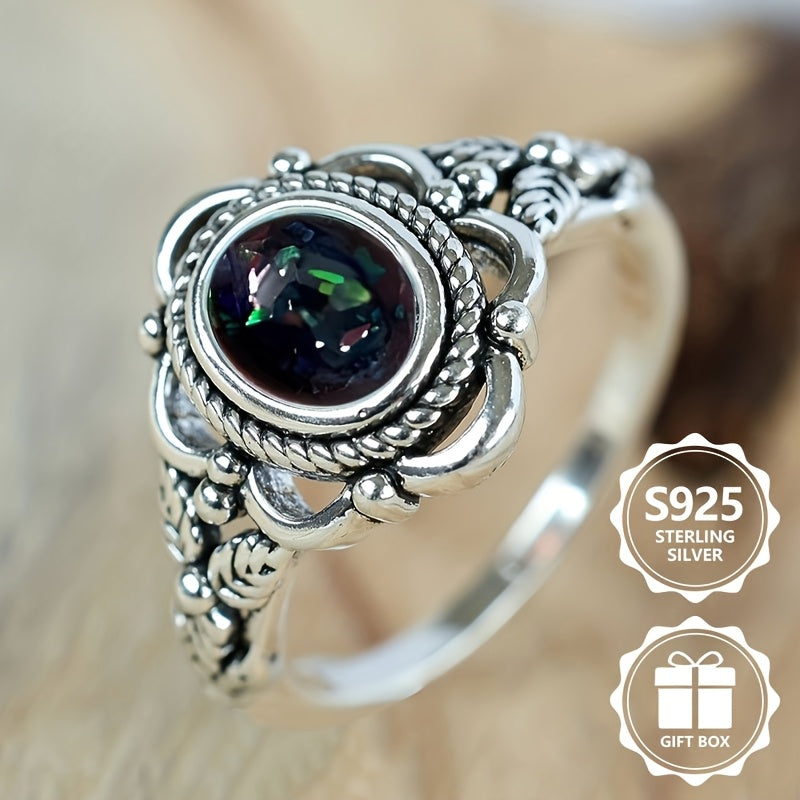 Elegant 925 sterling silver ring featuring stylish opal inlay, perfect for casual wear, parties, travel, and gifting to friends and family.