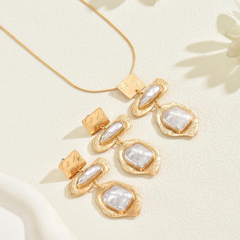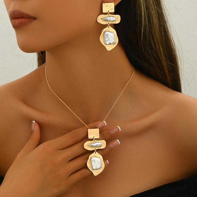 Elegant set featuring French thin snake chain with irregular geometric pendants. Perfect for parties and events.