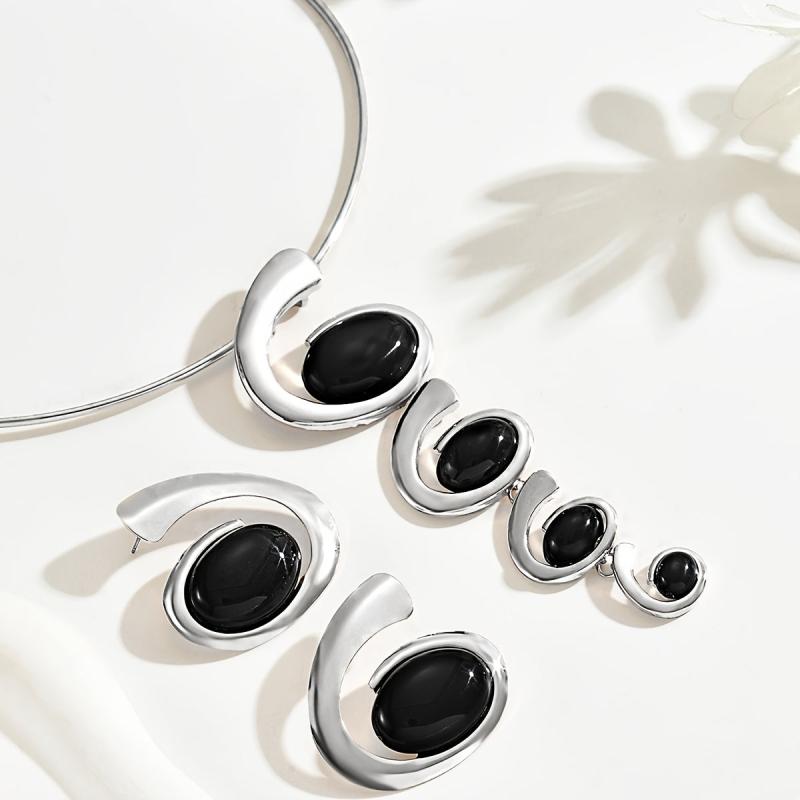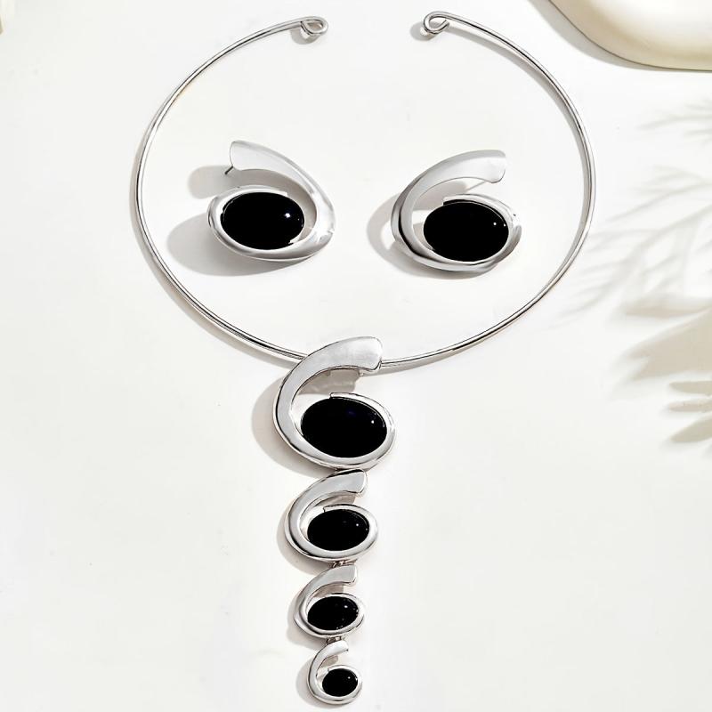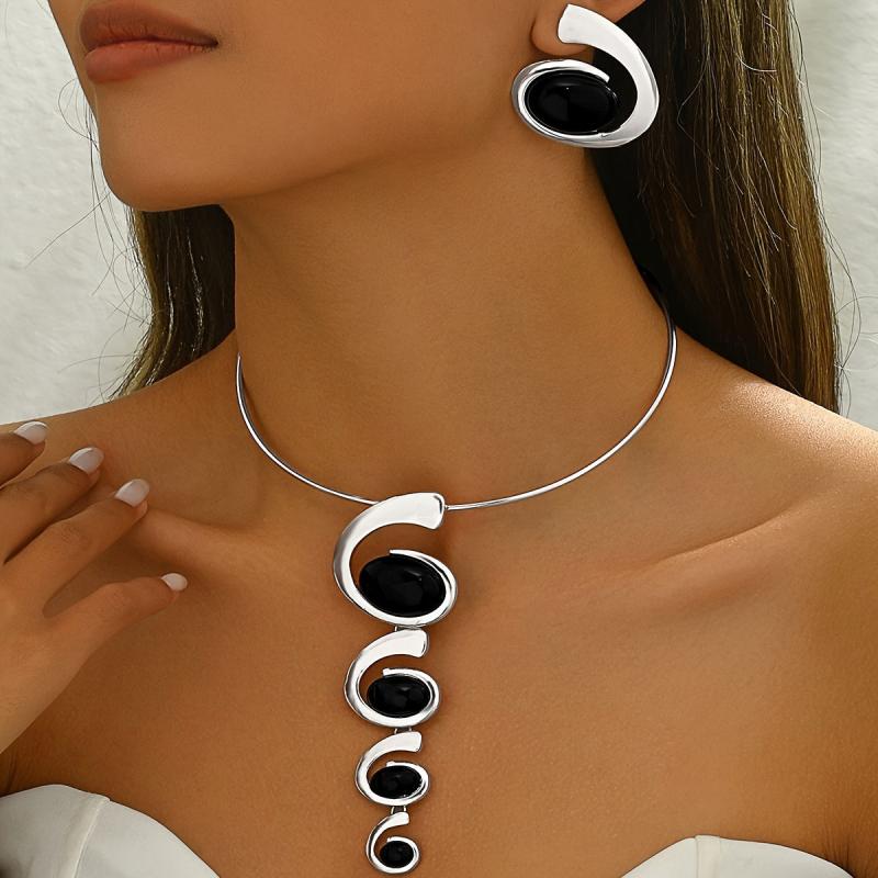 Elegant set with spiral snail shaped gradient pendant necklaces and earrings.