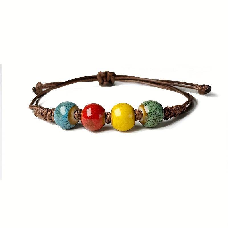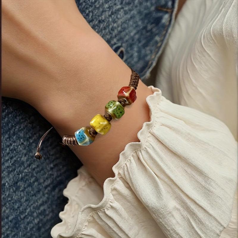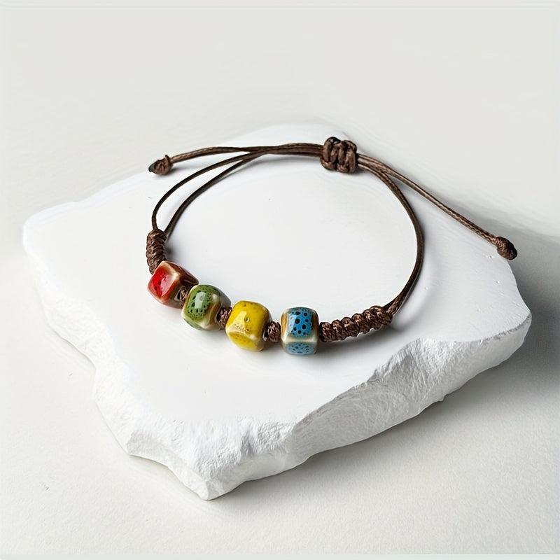 Elevate your style with this handcrafted bracelet featuring colorful ceramic beads. Perfect for casual wear, beach outings, and vacations.