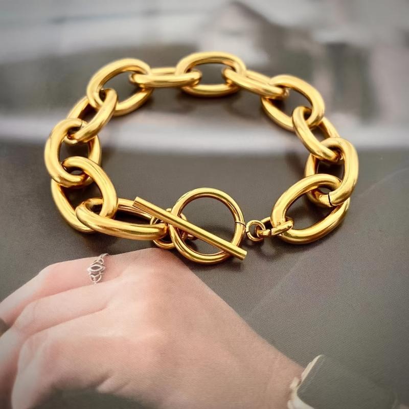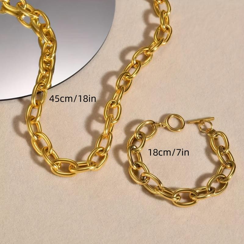 Beautiful set featuring golden tone round beads made of stainless steel and copper.