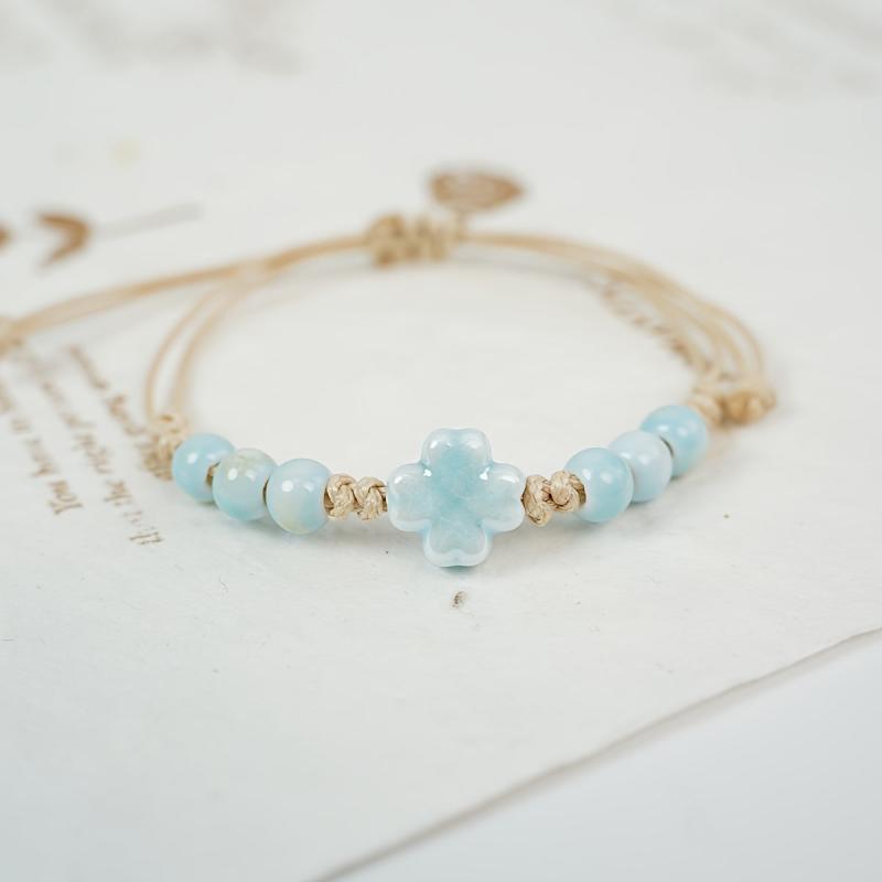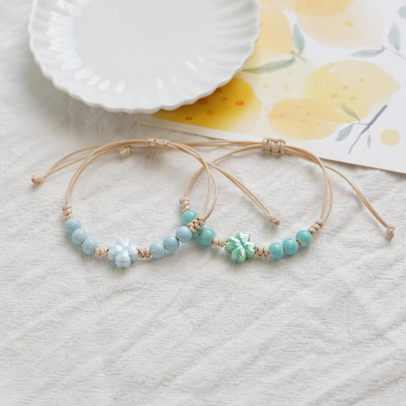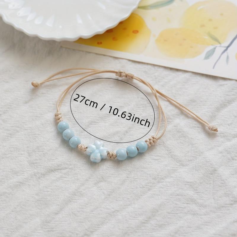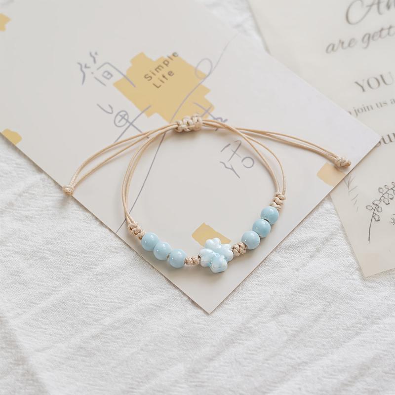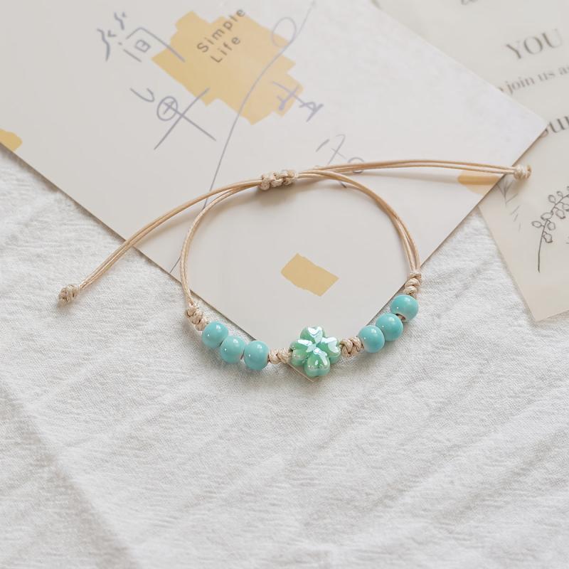 This woven friendship bracelet is a stylish accessory for daily wear, travel, and festivals. The ceramic beads and turquoise accents add a pop of color to your outfit.