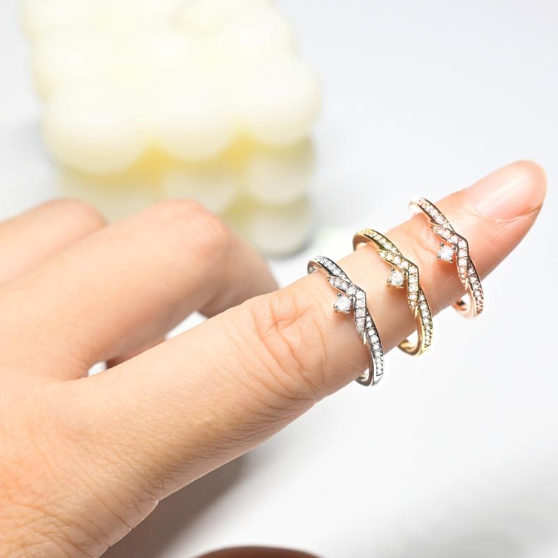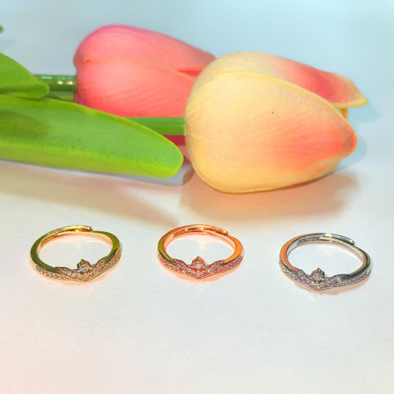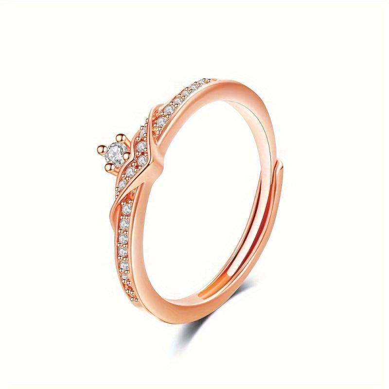 Adjustable CZ Classic Ring Rose/Silver Color