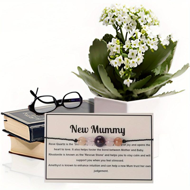 This beautiful bracelet features amethyst and rose quartz beads, an adjustable design, and an inspirational message card. A perfect gift for Mother's Day!