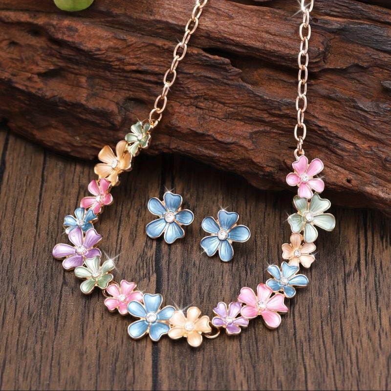 Adorn yourself with this sweet and lovely jewelry set featuring artificial enamel flowers and rhinestones. Perfect for daily wear or holiday occasions.