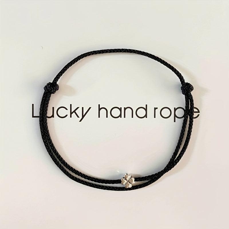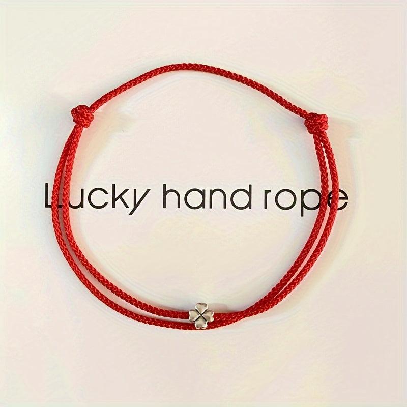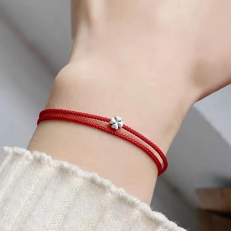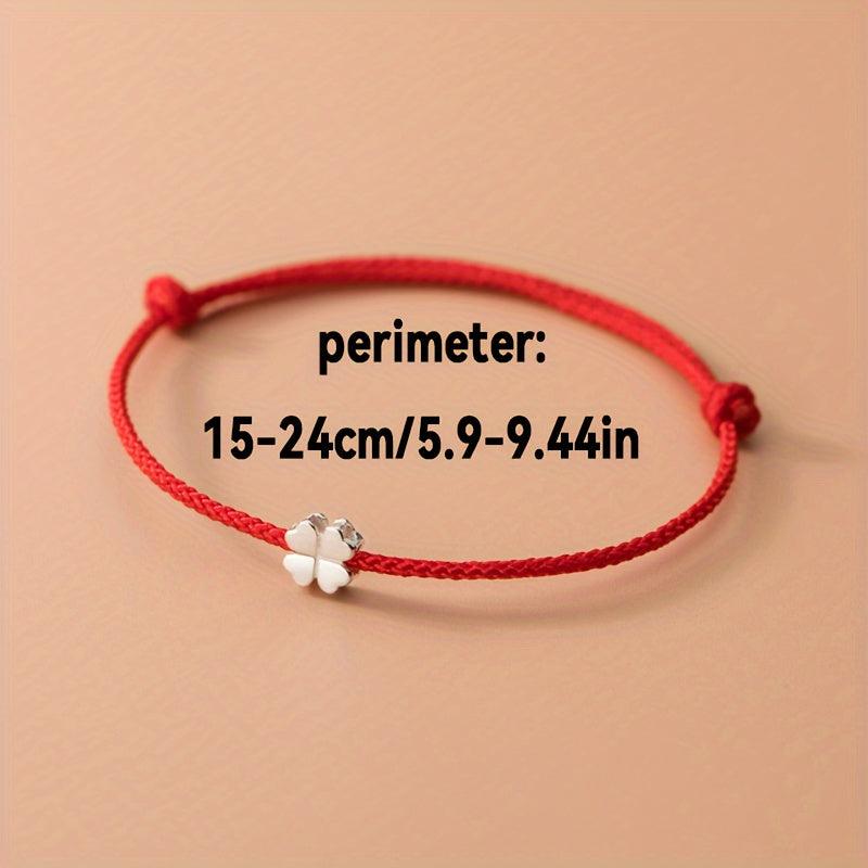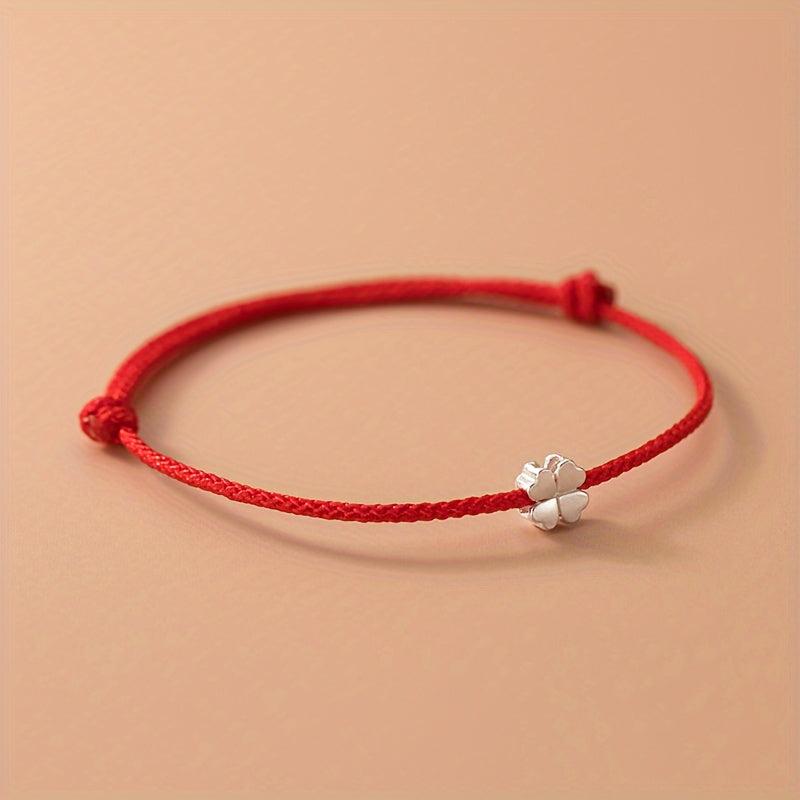 This women's bracelet features a four leaf clover design on a red rope, making it a stylish accessory for all seasons. It would be a perfect gift for someone special.