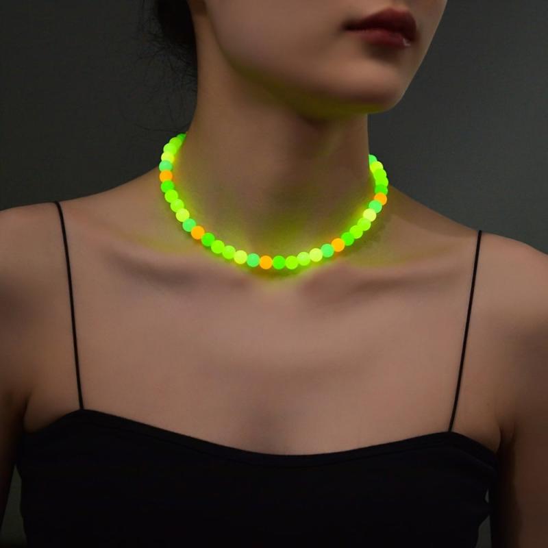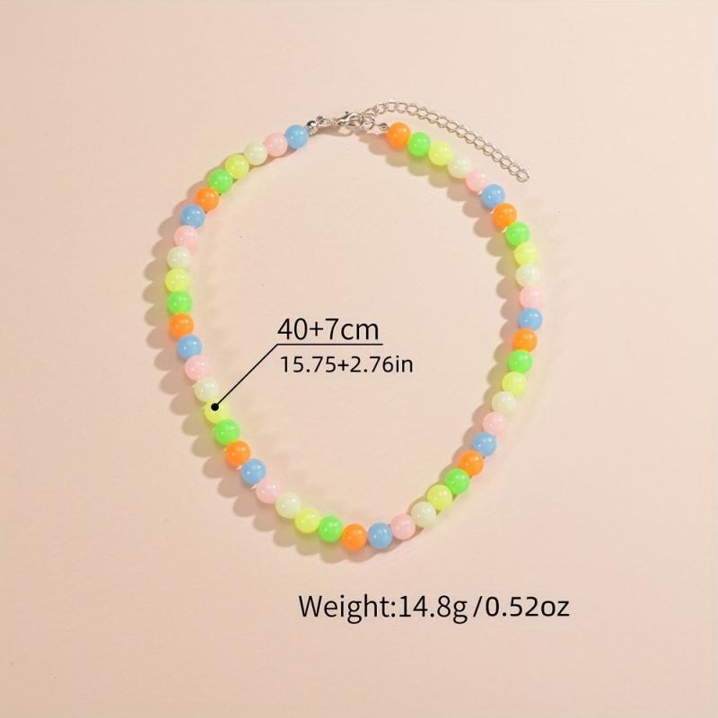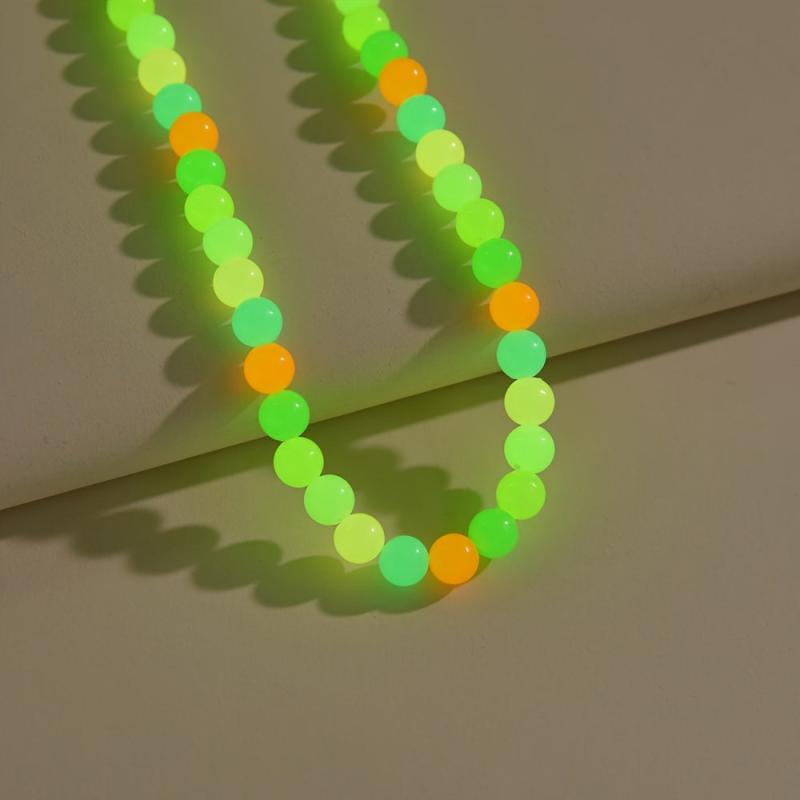 This acrylic bead necklace exudes Bohemian style and features glow-in-the-dark beads. It's perfect for November birthstones and Thanksgiving celebrations.