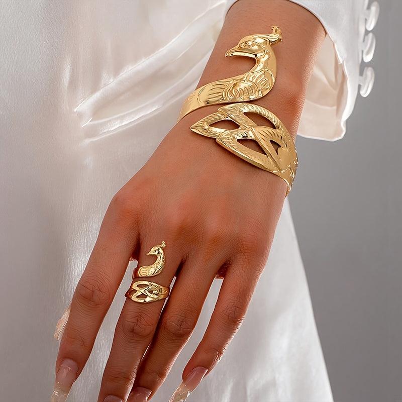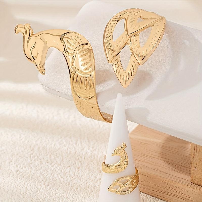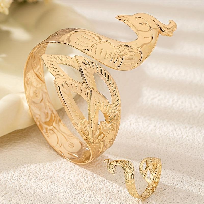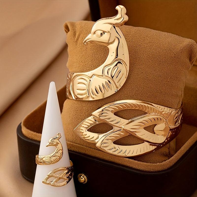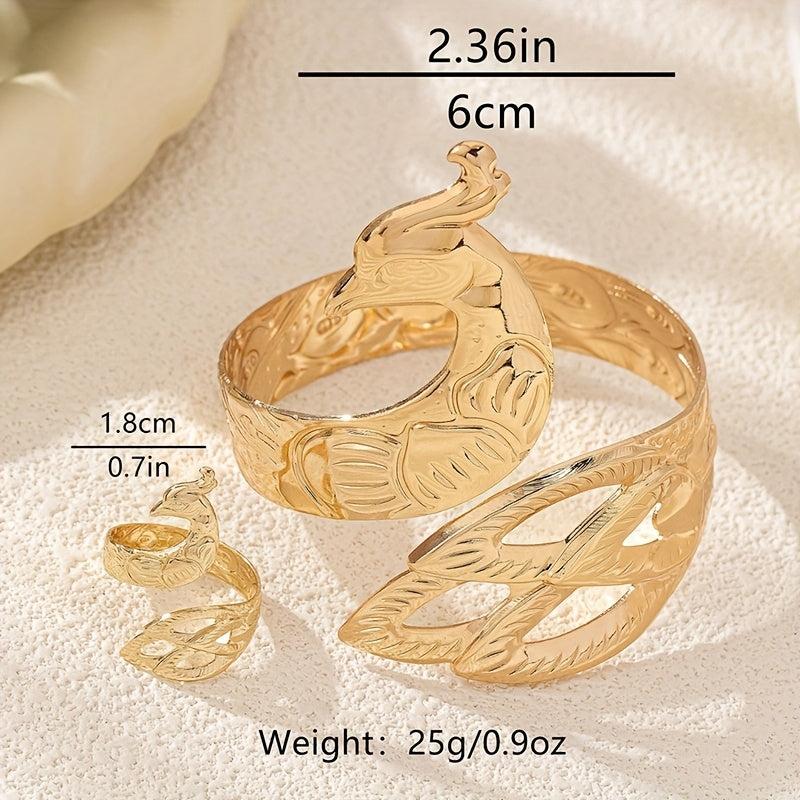 Adorn yourself with this 2-piece set featuring an openwork design inspired by peacock feathers. Perfect for adding a touch of bohemian charm to your look.