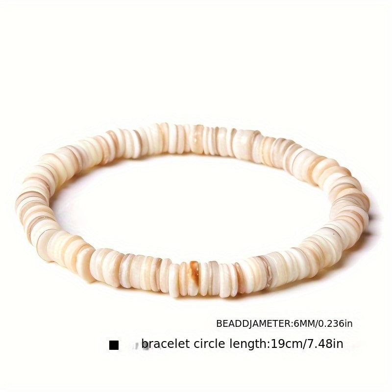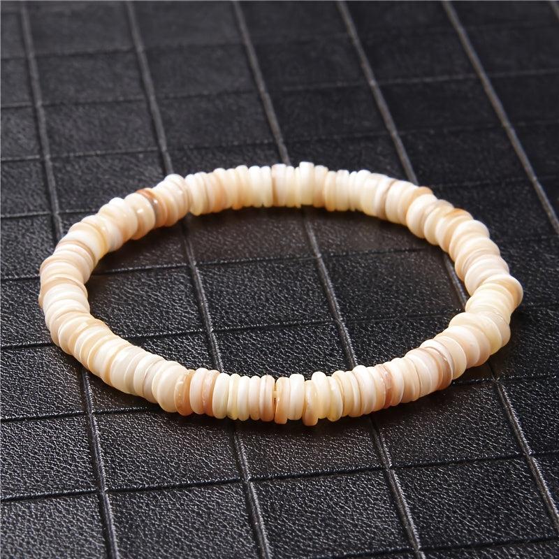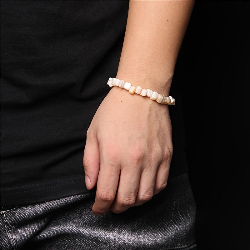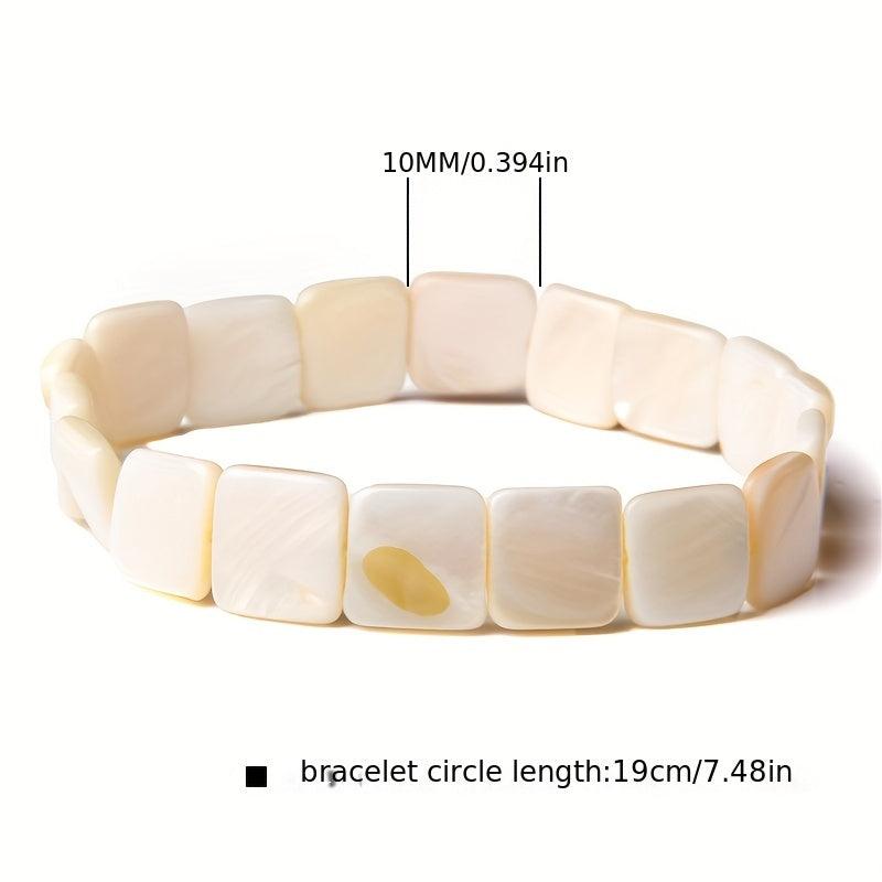 Elevate your beach vacation look with this bold shell bracelet featuring square segments in a bohemian style.