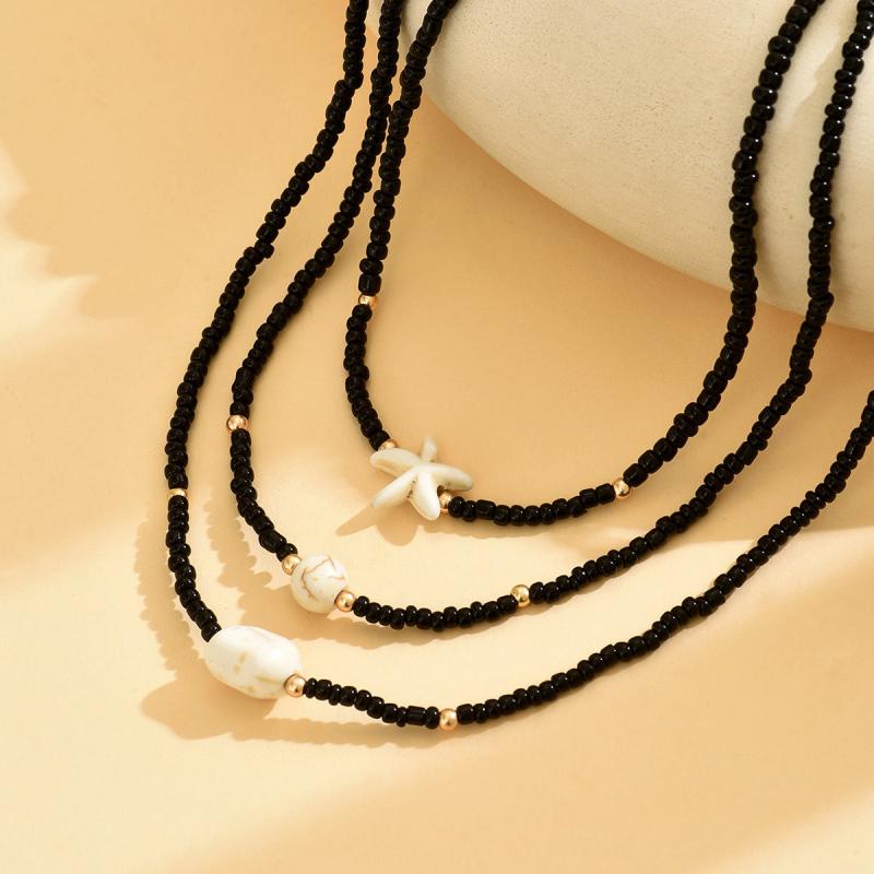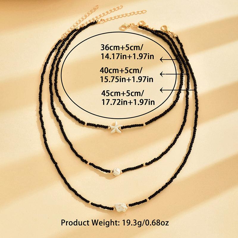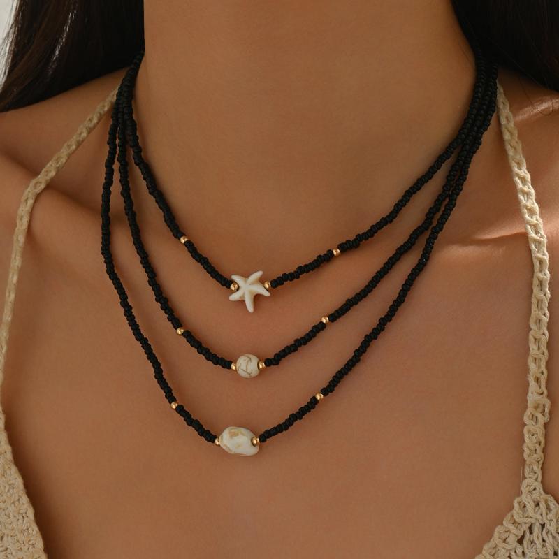 Boho Beaded Necklace Set Glass Starfish Pearl Pendant