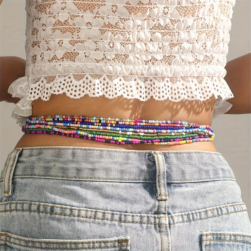 Boho Glass Beaded Woven Waist Chain for Women Beach Party Vacation