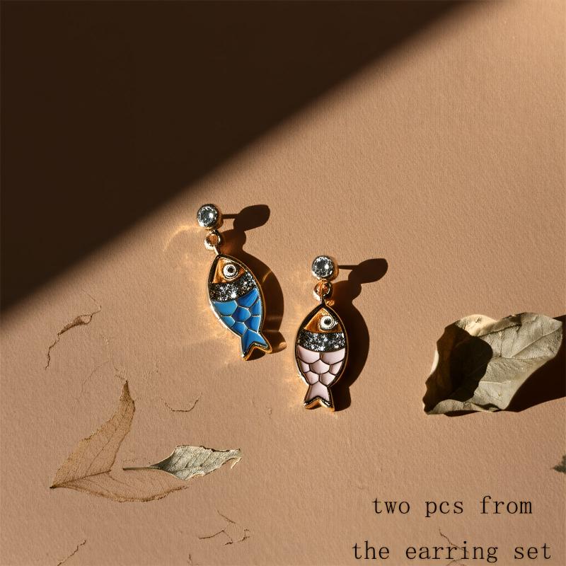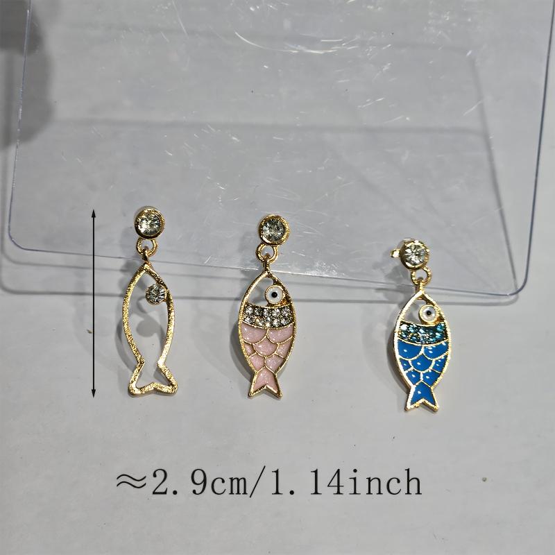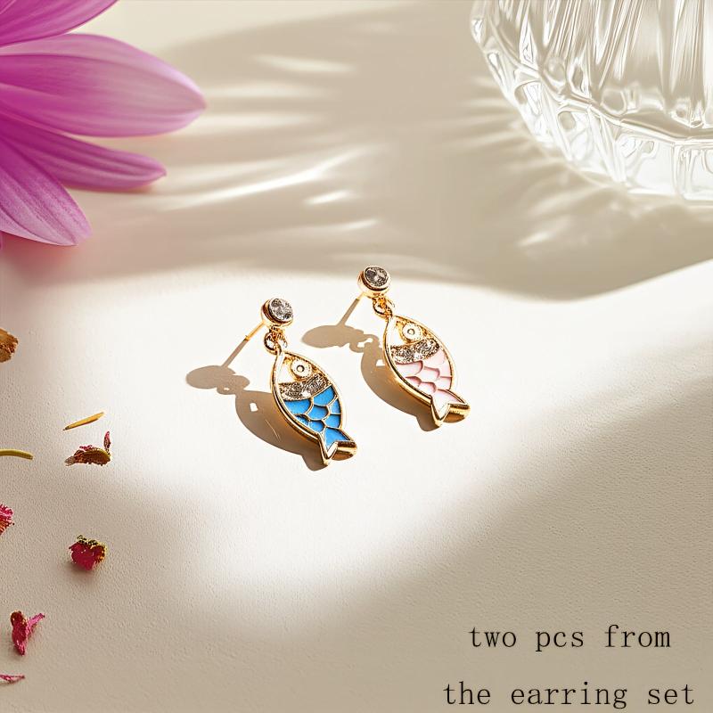 Celebrate Qixi anniversary with this 3-piece set of unique unisex earrings featuring colourful stud, pendant, drop dangle, and hoop styles. Fish-shaped design inlaid with rhinestones adds a touch of sparkle.