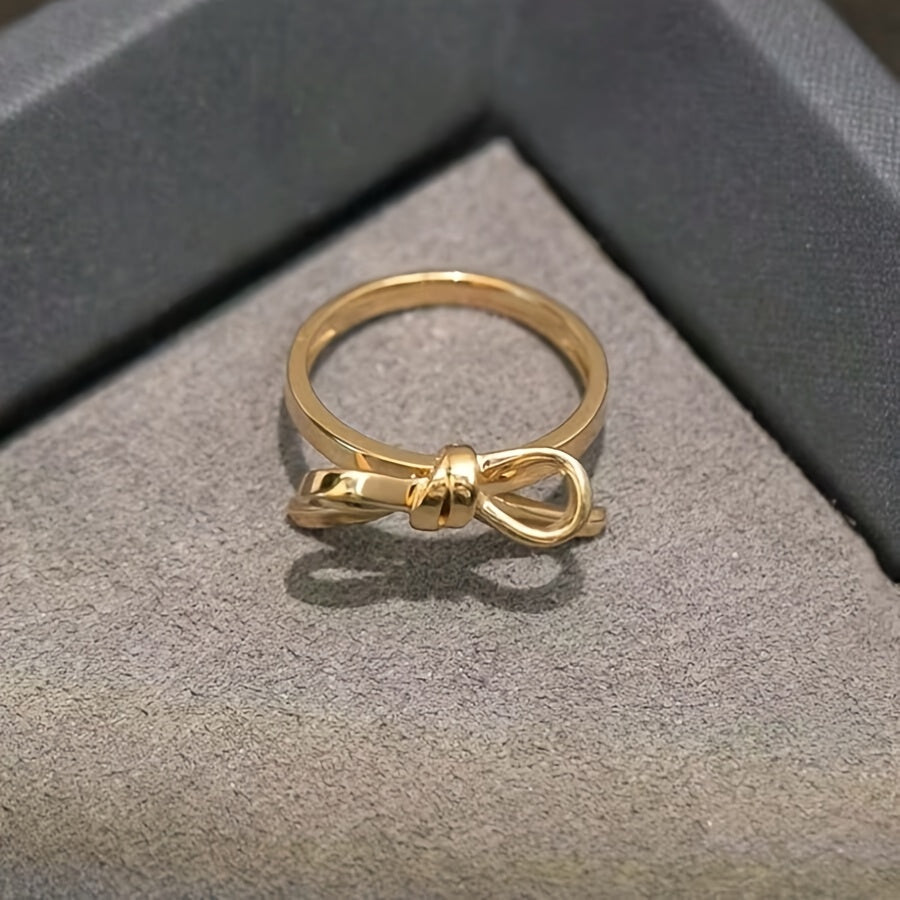 Elevate your look with this boho-chic 18K plated zinc alloy ribbon knot ring. Ideal for all season wear, this durable and versatile piece is perfect for daily use.
