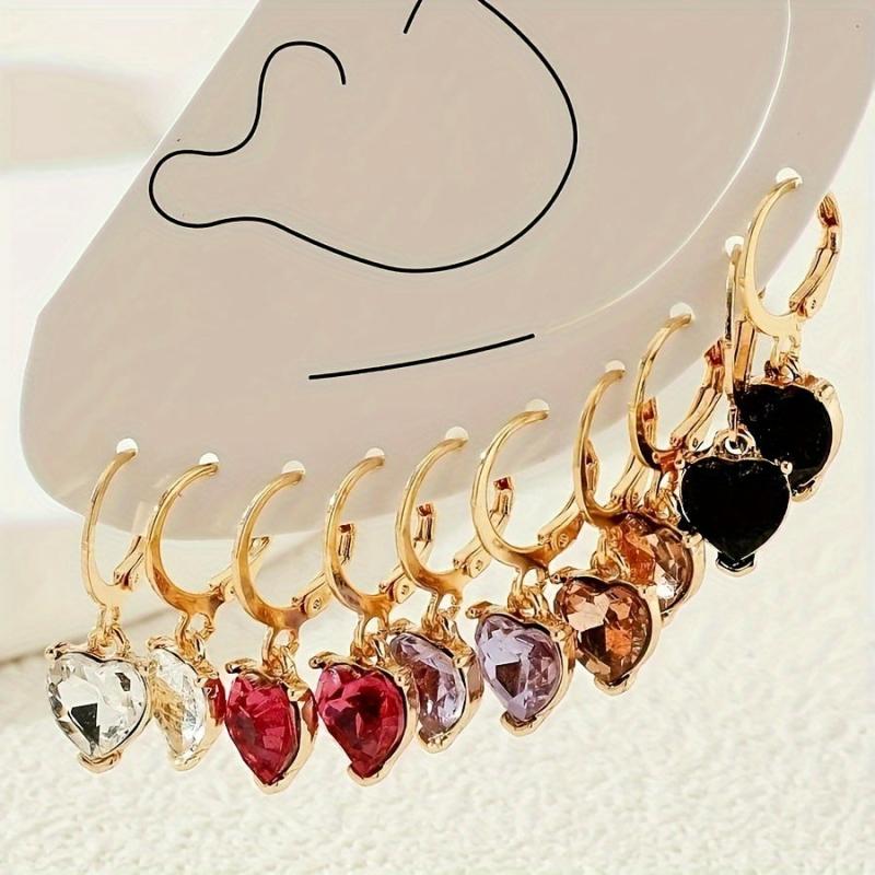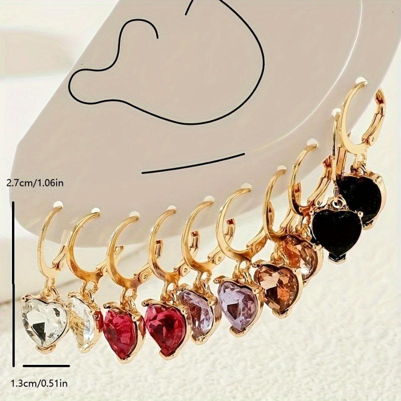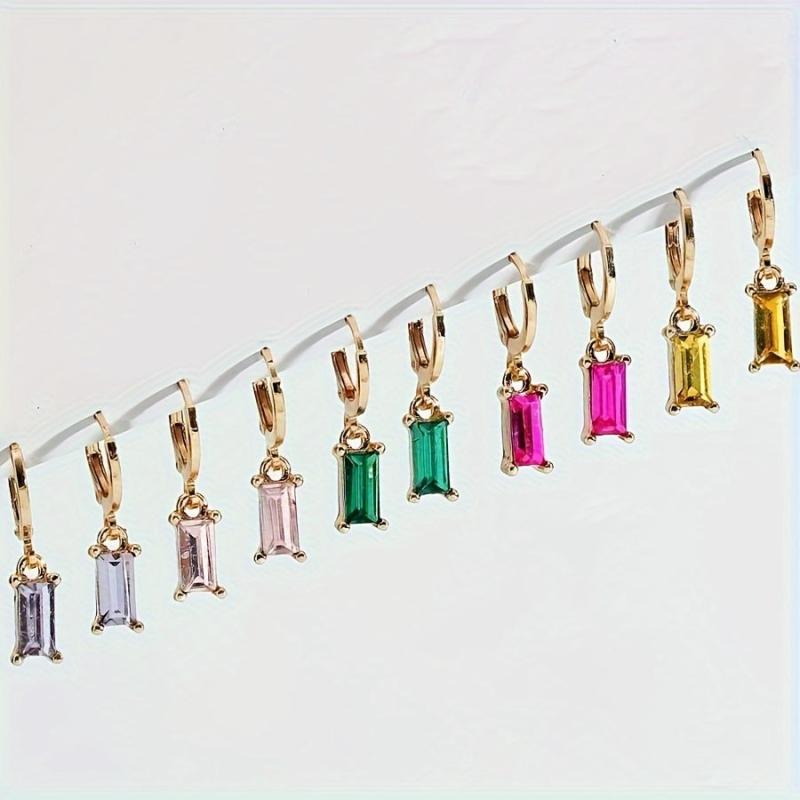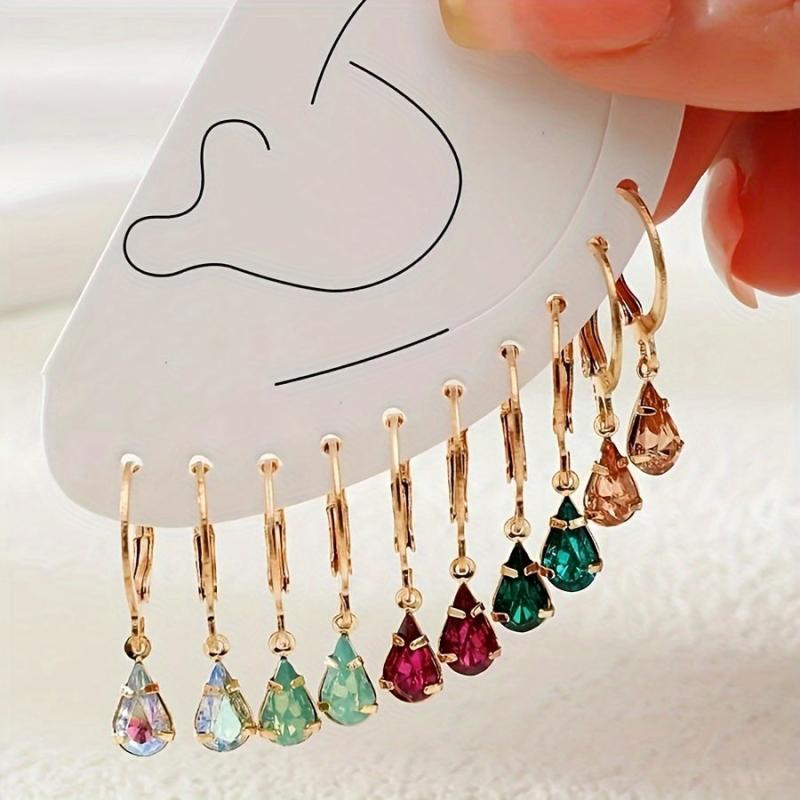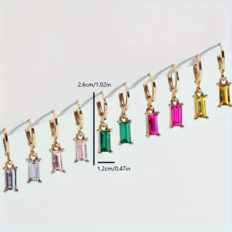 Add a touch of bohemian chic to your outfit with this set of 5 pairs of colorful synthetic gemstone earrings. Featuring geometric shapes like water drops, rectangles, and hearts, these dangle earrings are perfect for women who love to express their unique style.