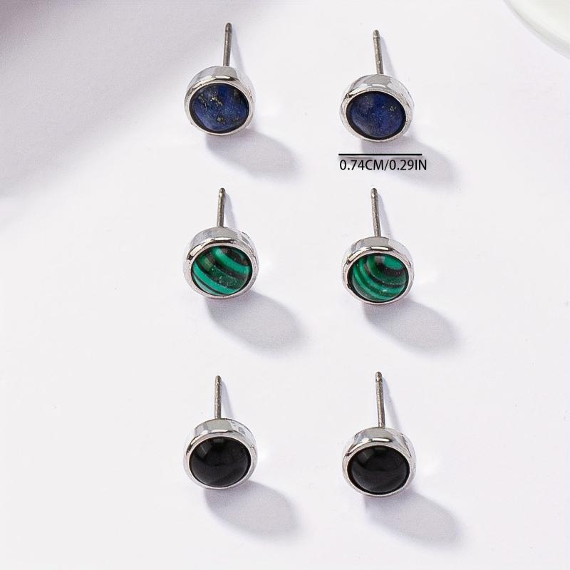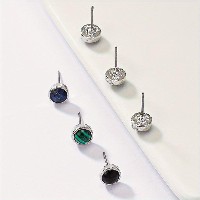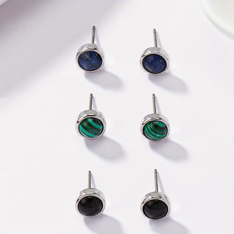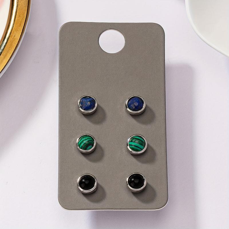 Elevate your look with this set of three minimalist bohemian style earrings featuring natural stones. Add a retro touch to any outfit.