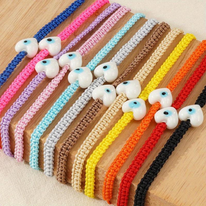 Elegant and versatile braided bracelet featuring heart-shaped glass beads in a variety of colors, perfect for daily wear.