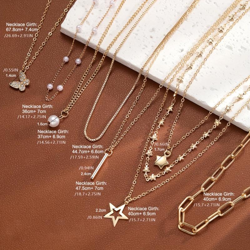 Add a touch of whimsical charm to your outfits with this necklace set featuring butterfly, star, bow, and heart pendants. Ideal for everyday wear and beach parties.