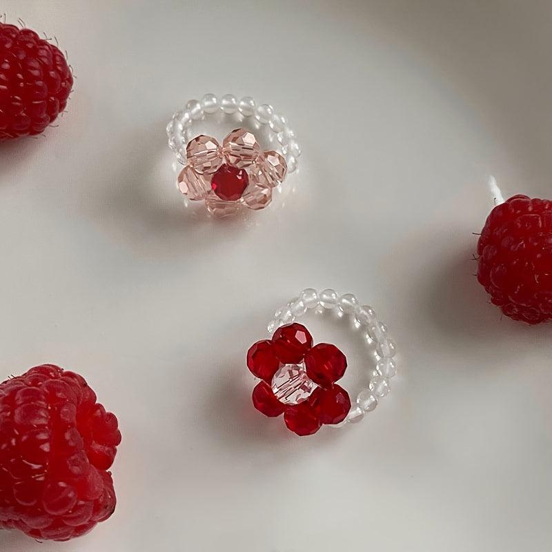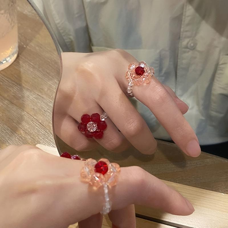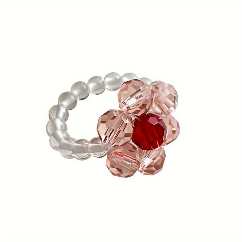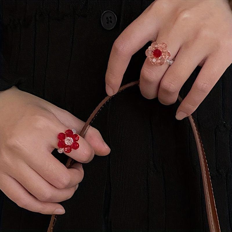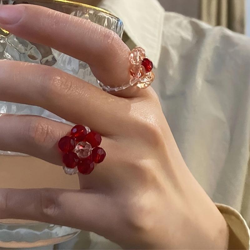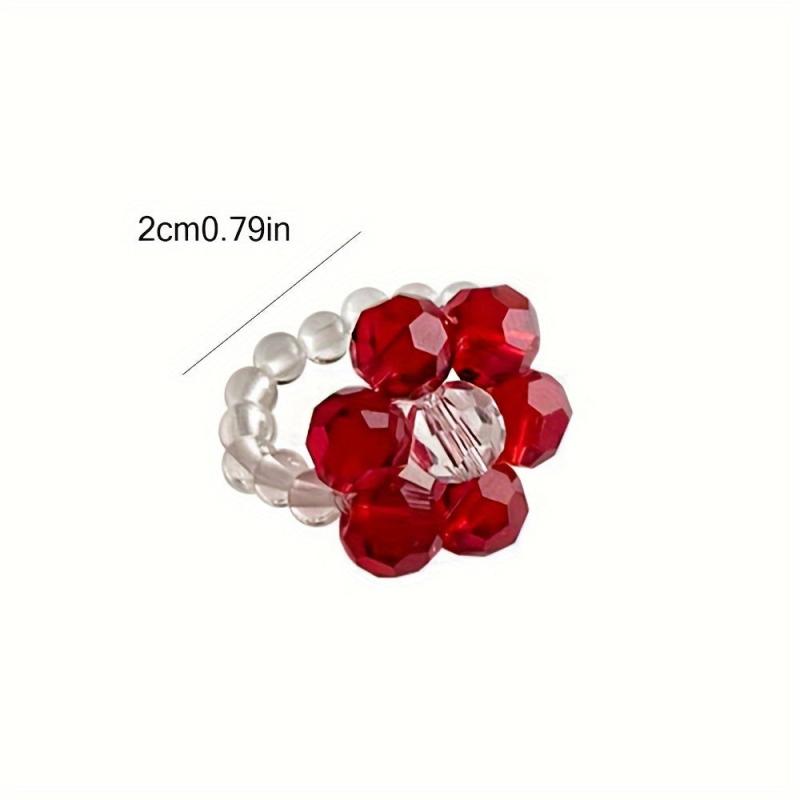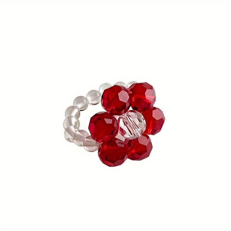 Charming Flower Ring Beaded Daisy Red Centerpiece Everyday Wear & Vacations