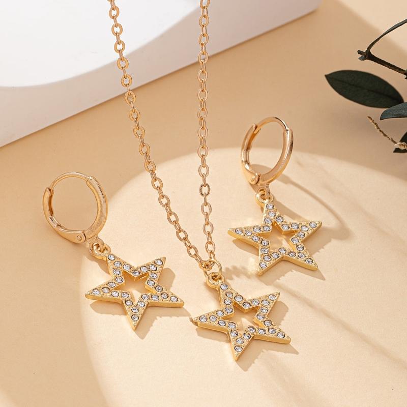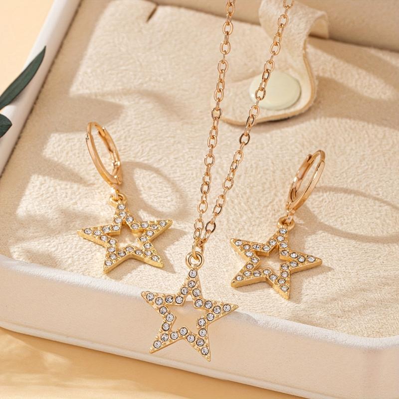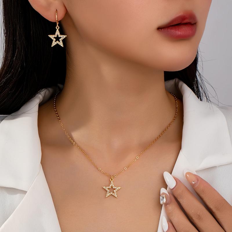 Elevate your look with this stylish women's five-pointed star necklace and earrings set. Perfect for daily wear or parties, this set adds a touch of sophistication to any outfit.