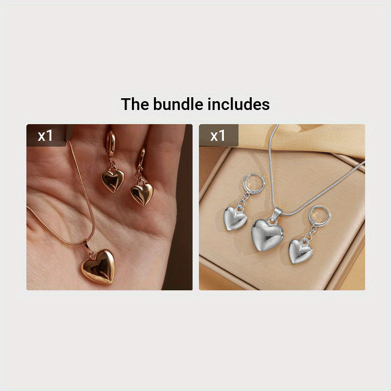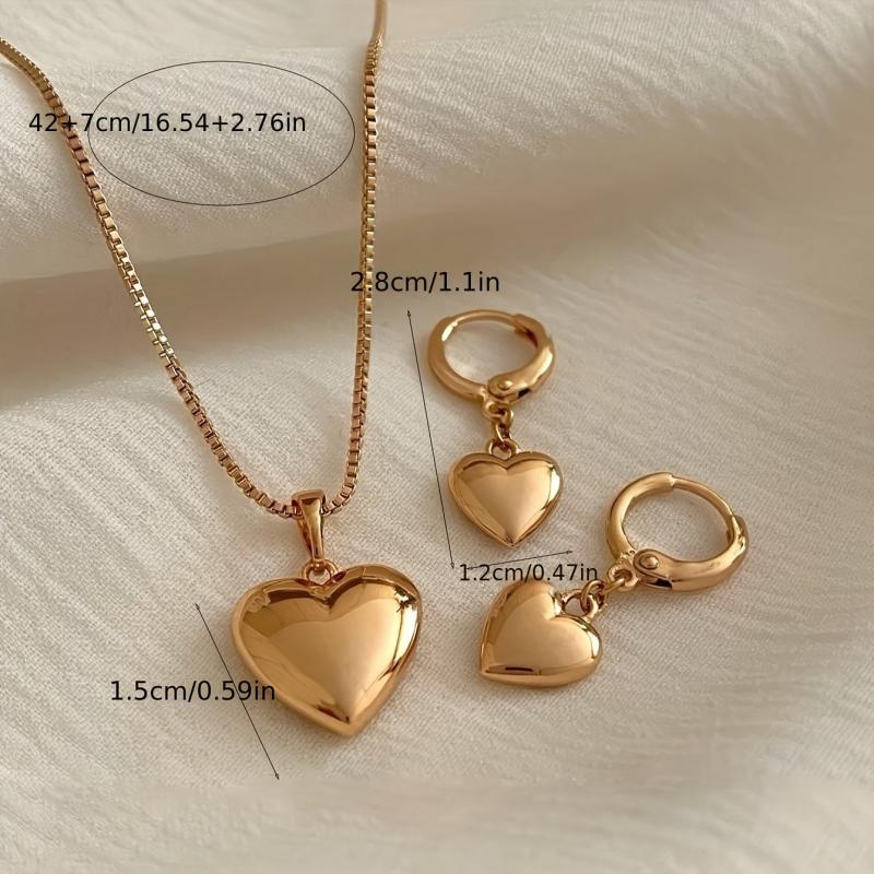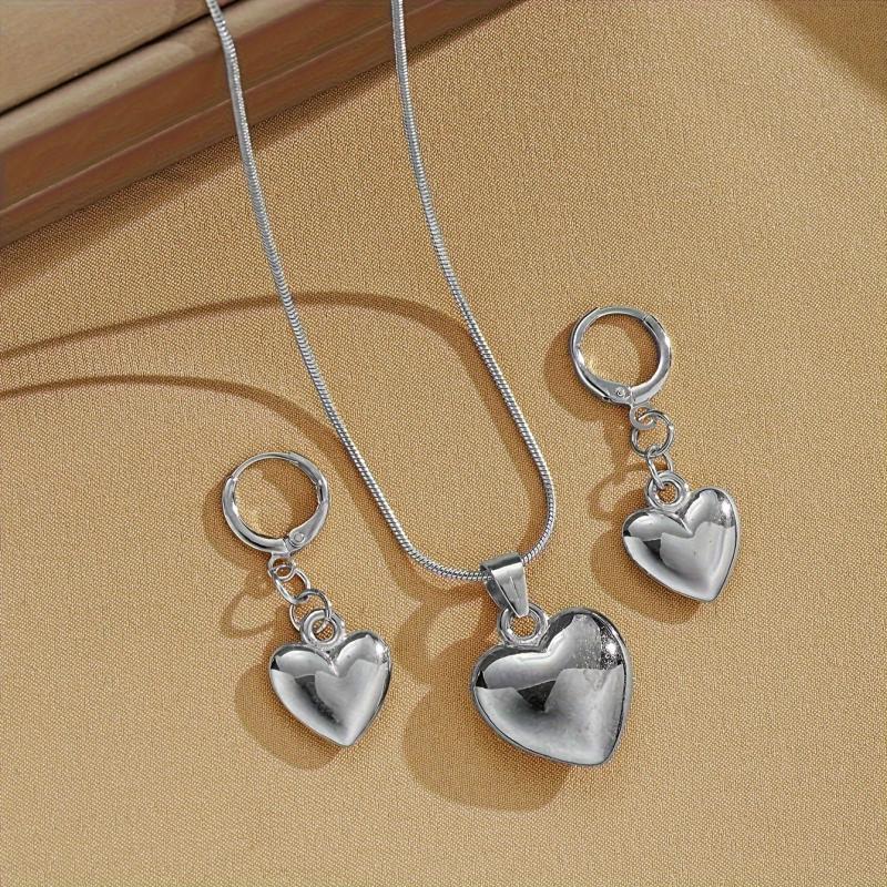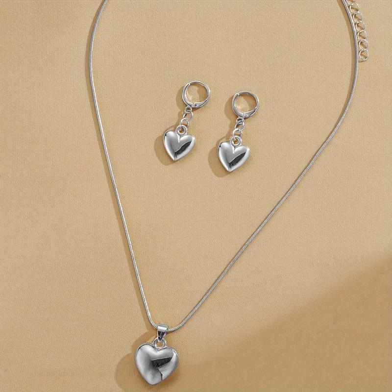 This 3-piece jewelry set features a Chubby Love pendant necklace and earrings, perfect for holiday parties or daily wear. Versatile and stylish, it is a great gift option.
