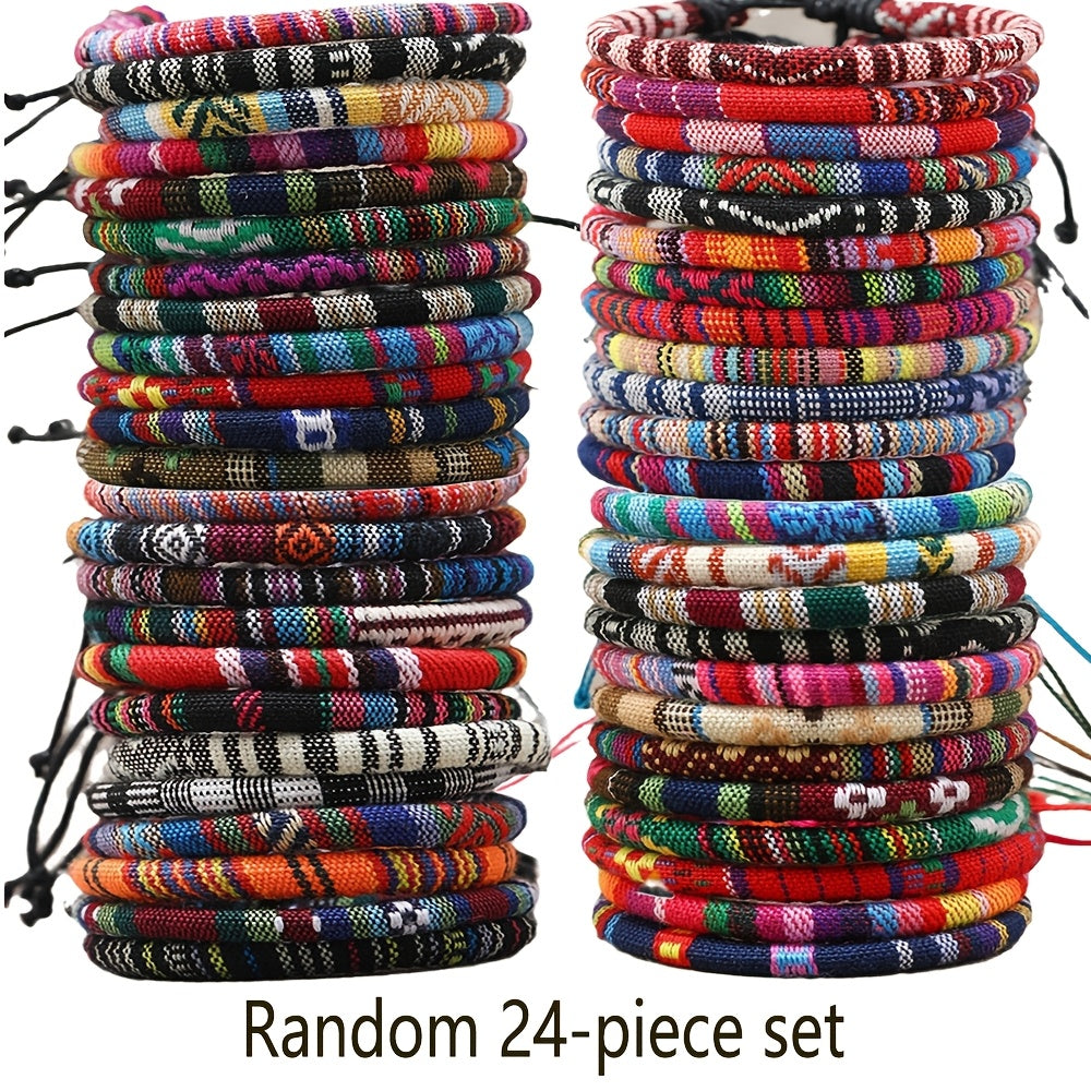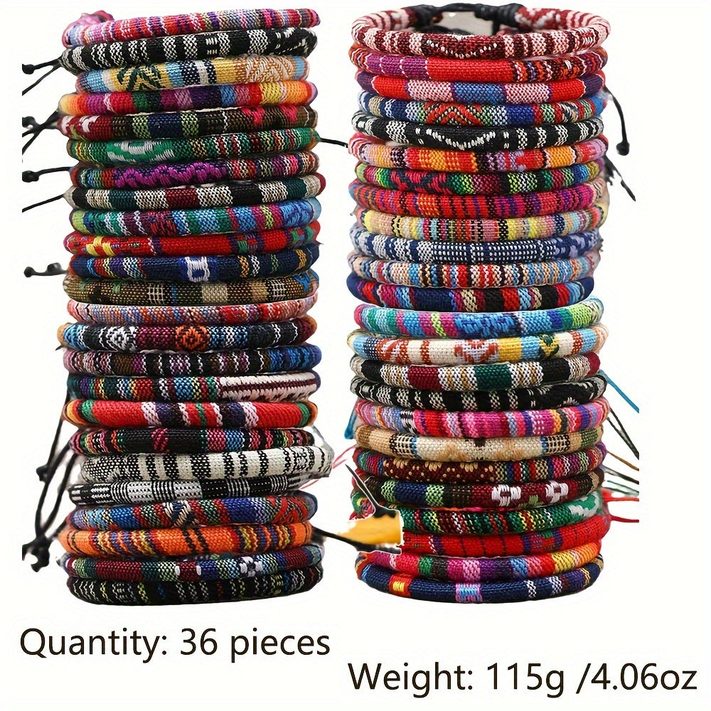 Get this set of 12, 24, or 36 colorful surfing friendship bracelets that are handwoven with an ethnic touch. Perfect for men and women with a bohemian style.