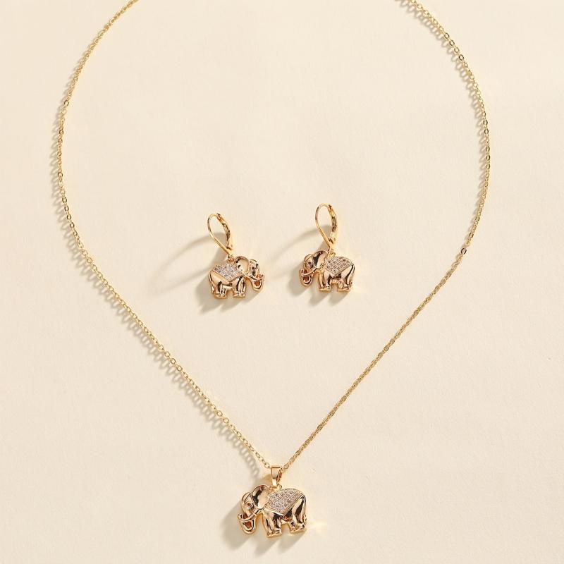 Show off your hip hop style with this two-piece jewelry set featuring micro inlaid zirconia. The elephant design adds a touch of uniqueness to your look.
