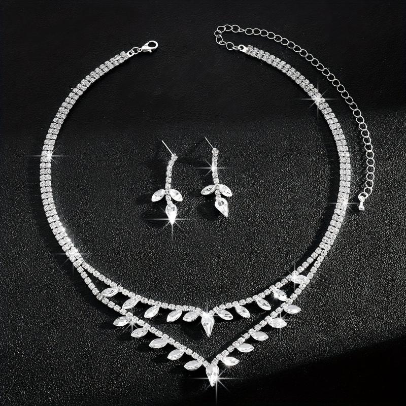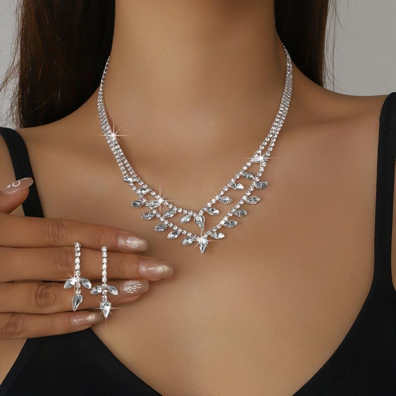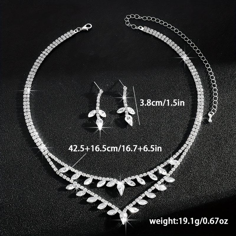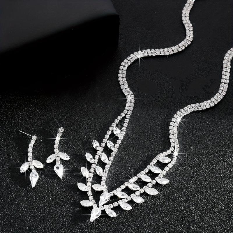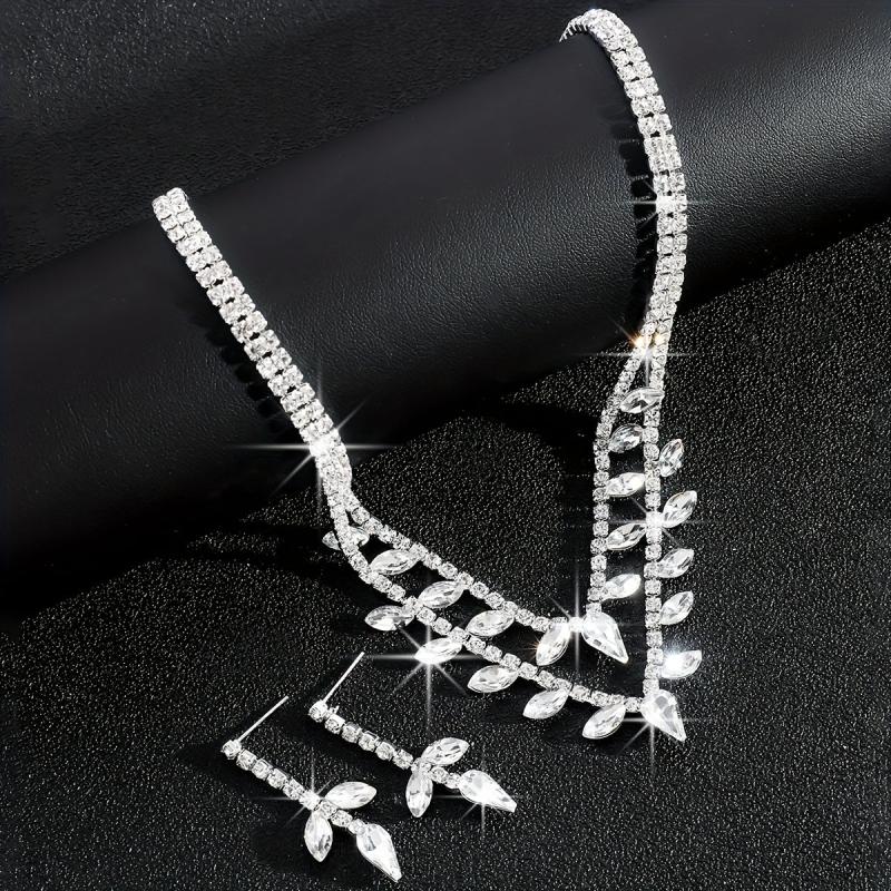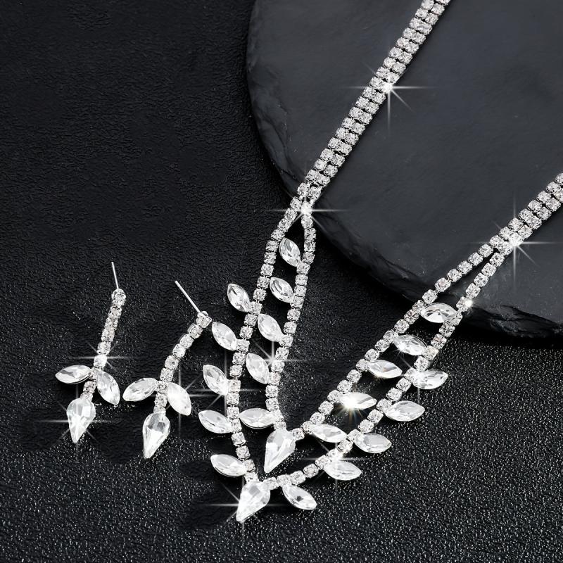 Elegant jewelry set featuring artificial crystal leaf design, perfect for bridal weddings and special occasions.