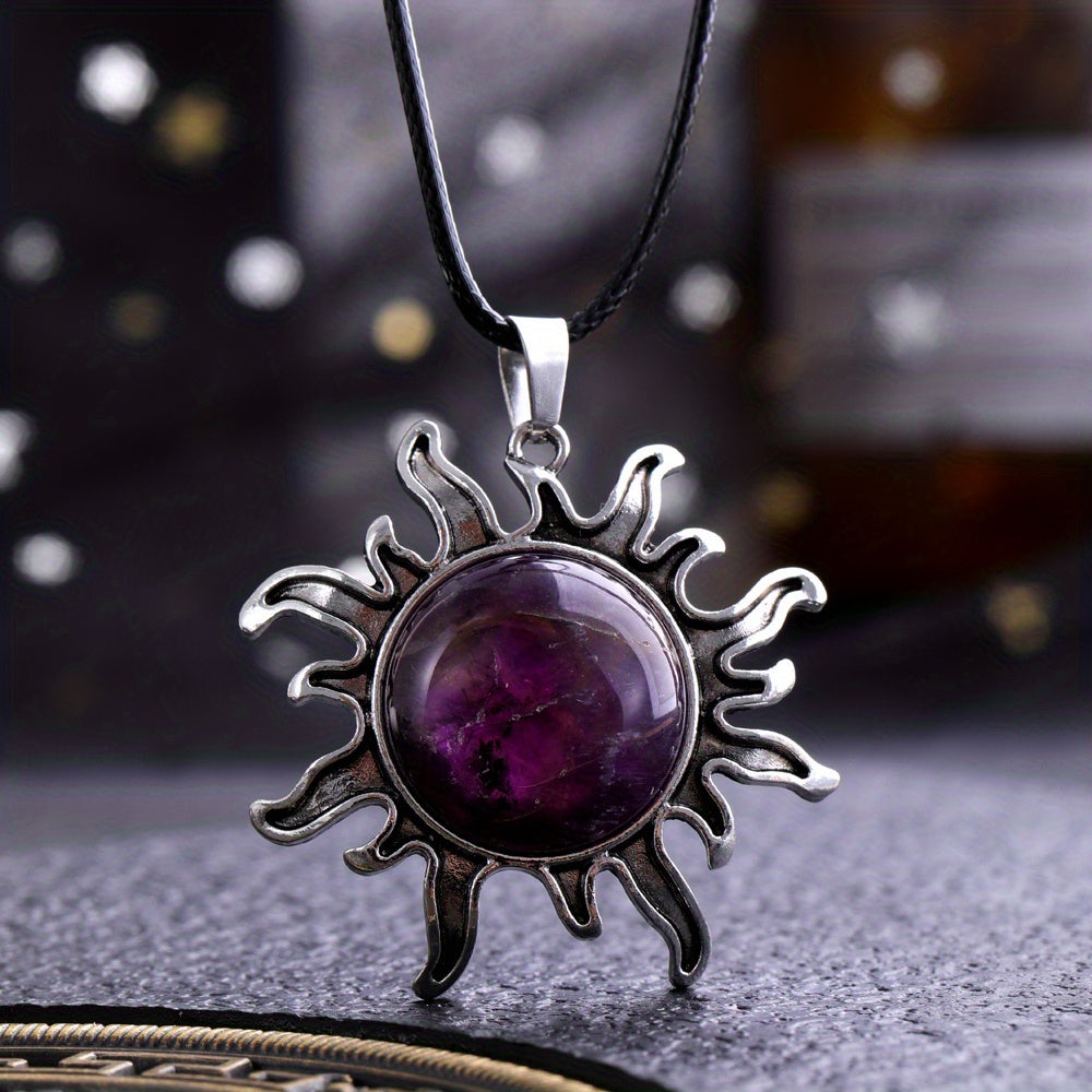 Crystal Sun Pendant Necklace February Birthstone Jewelry