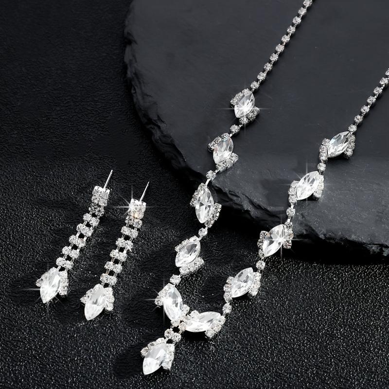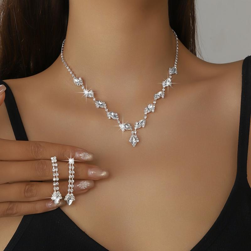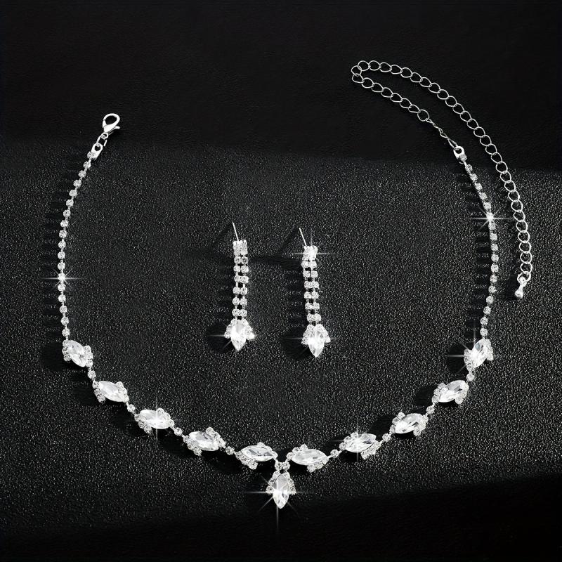 Enhance your bridal look with this elegant artificial crystal teardrop necklace and earrings set. Perfect for wedding accessories.