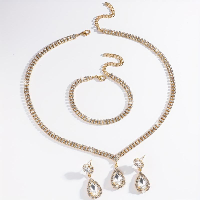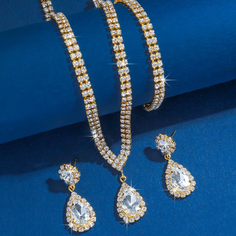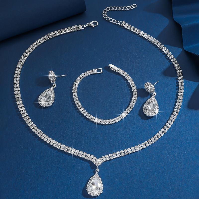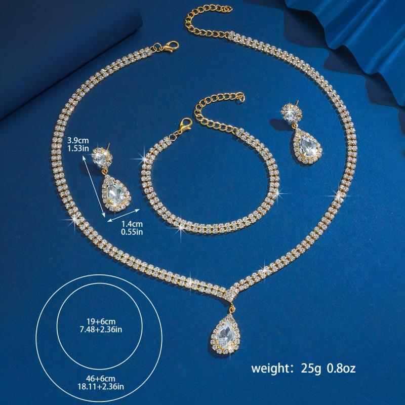 Complete your party or banquet look with this stunning 3-piece jewelry set featuring cubic zirconia teardrop pendants. The set includes a necklace, ring, and matching earrings, all designed to add a touch of sparkle to your outfit.