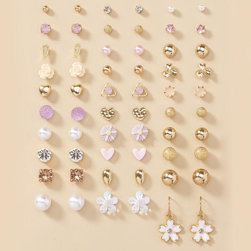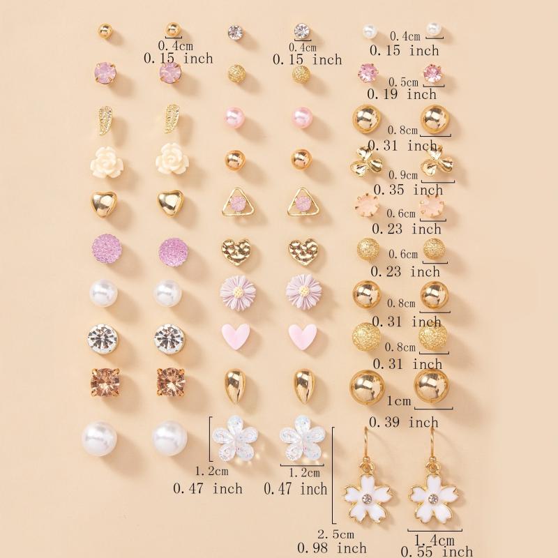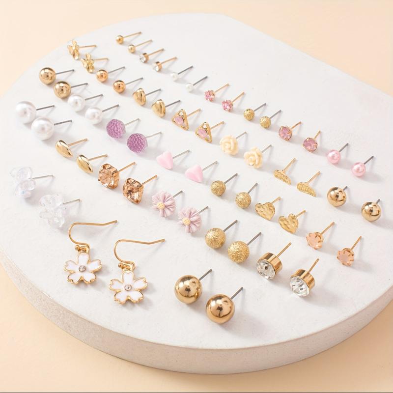 Daisy Flower Stud Earrings Set - 30 Pairs