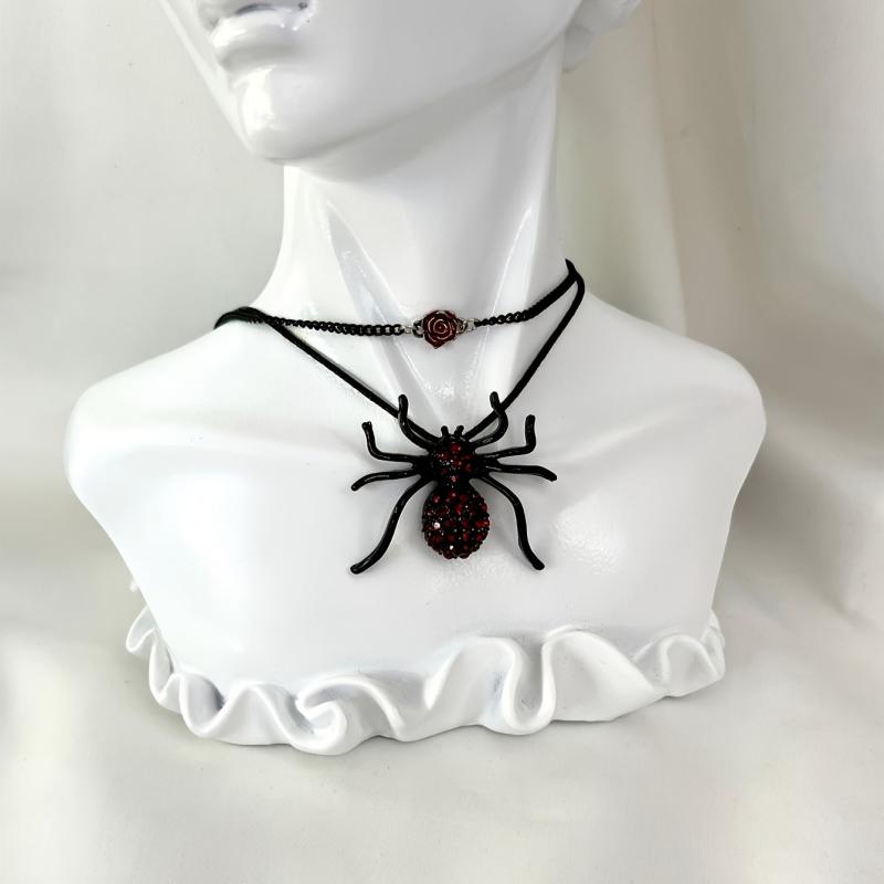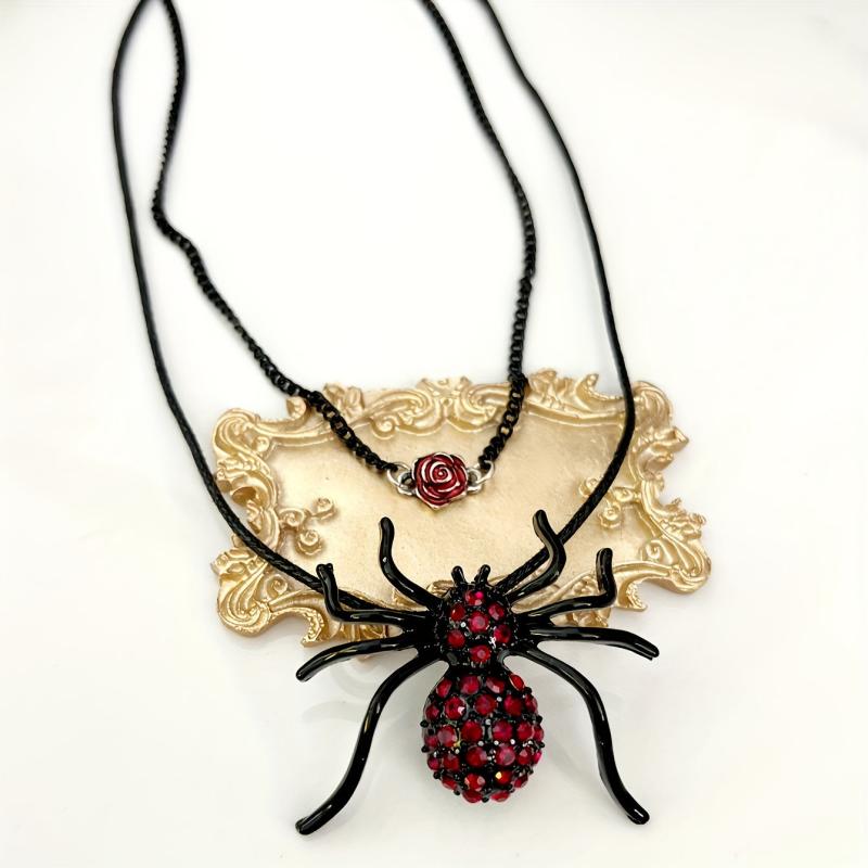 This high-end pendant features a dark gothic style with brick inlaid spider and rose design.