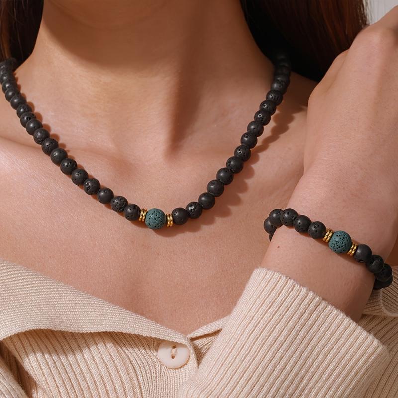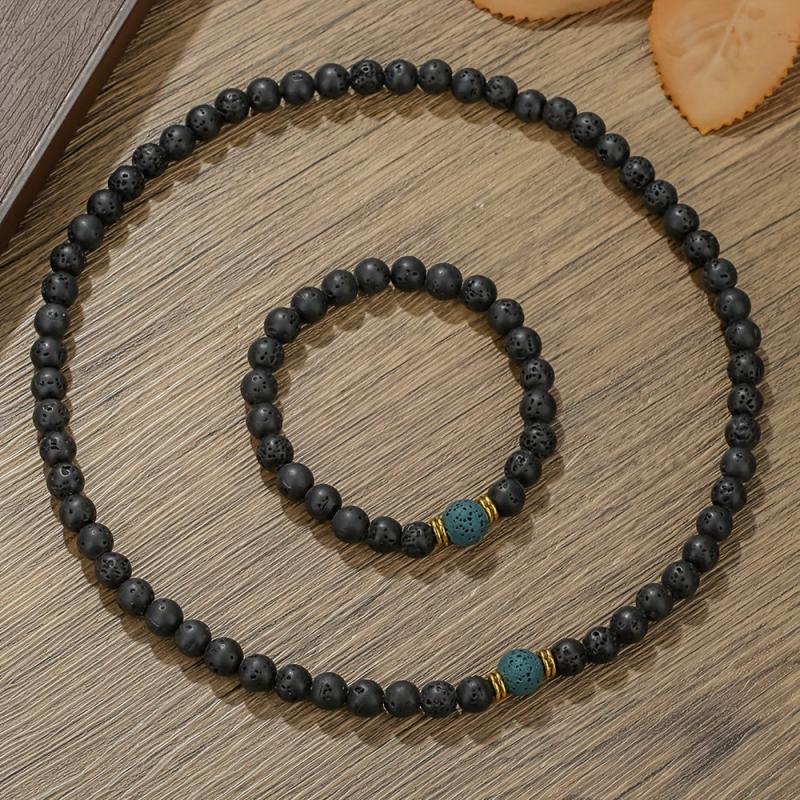 Unisex jewelry set perfect for all seasons. Makes a great gift for men and women. Features hot stone and turquoise accents.